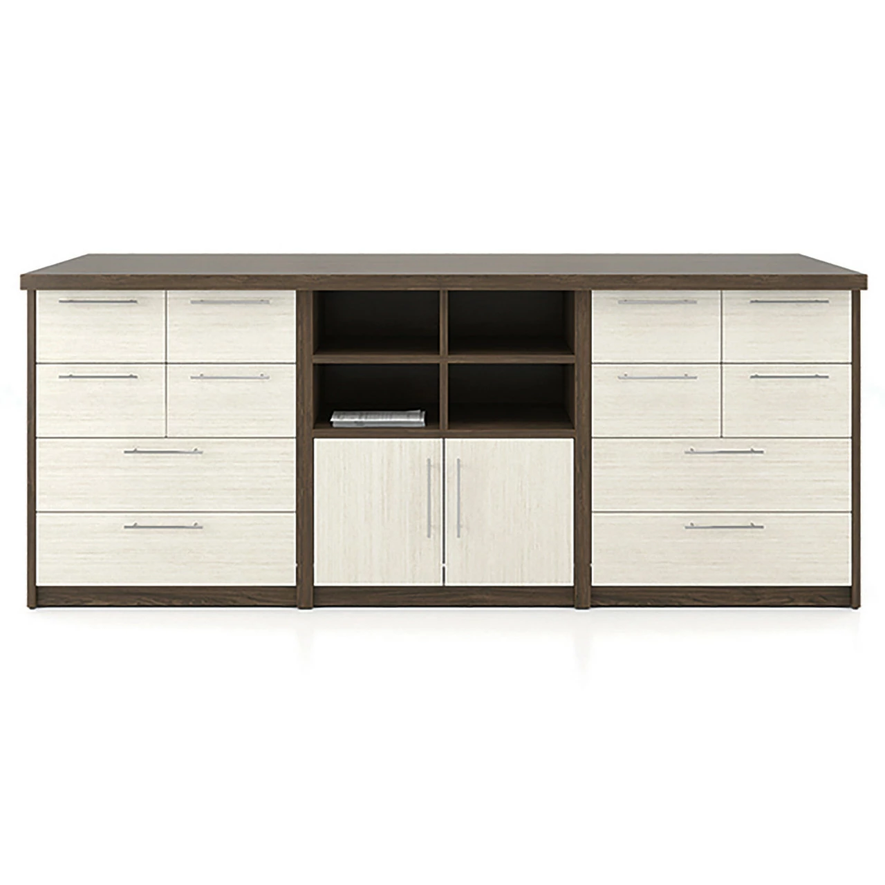 Create the perfect work space with a workstation that offers great functional versatility where you need it the most. This base unit combines storage and workspace to meet your workplace needs. With 4 open compartments and two large doors for storage and organizing paperwork, you won’t be lacking in space for your business essentials. Does not come with top.