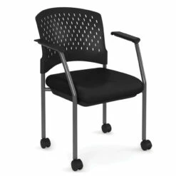 OfficeSource | Aero | Guest Or Side Chair With Arms, Black Fabric Seat And Titanium Frame