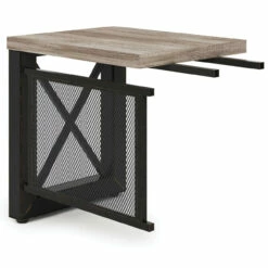 OfficeSource | Riveted | Industrial Desk With Metal X Base And Metal Mesh Modesty Panel – 71″W