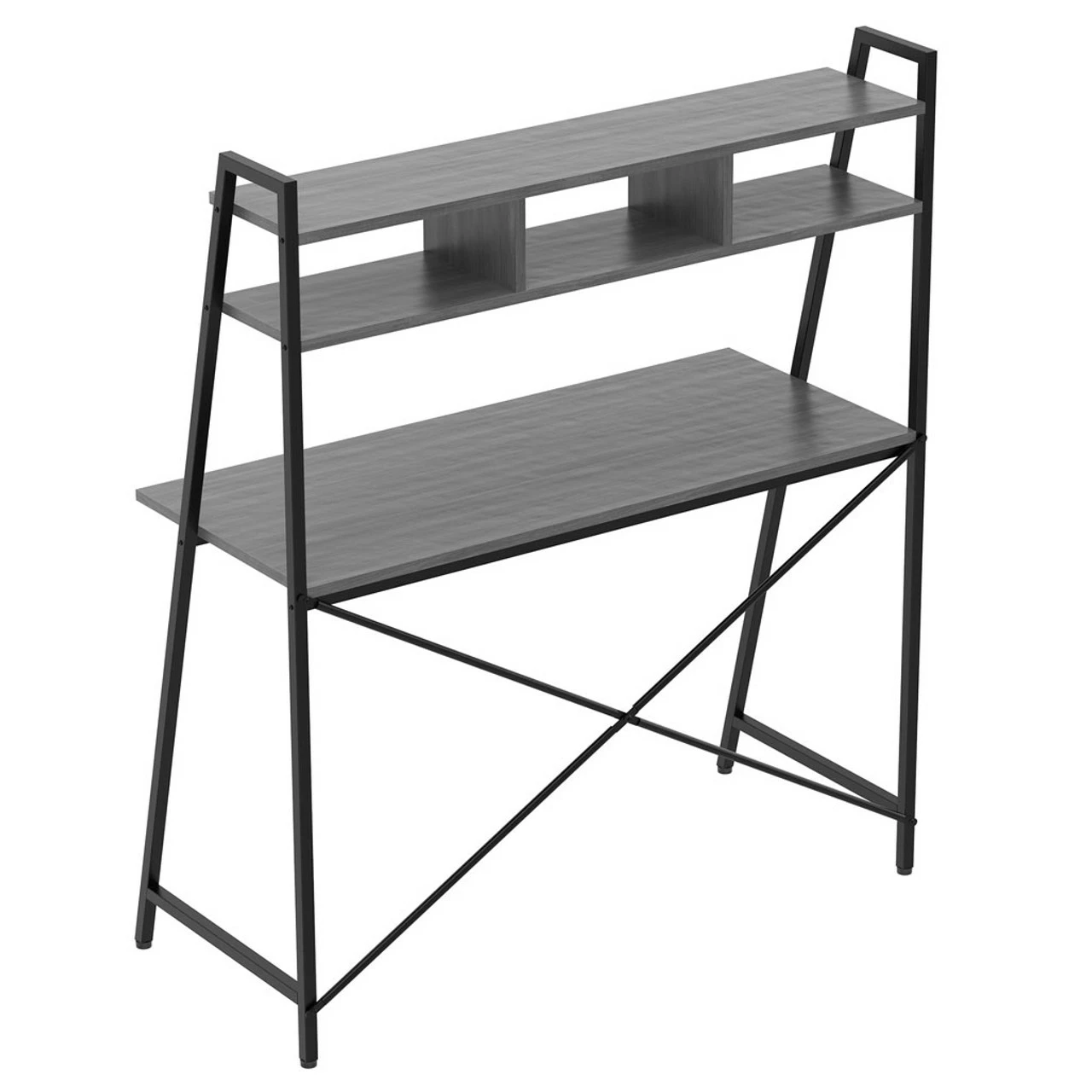 OfficeSource | Any Space WFH | Black Metal Frame Desk With Hutch & Two-Tier Shelves