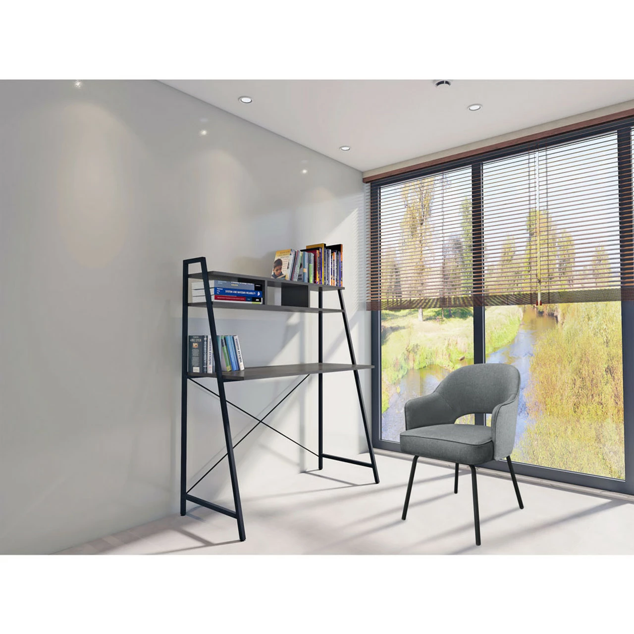 The Any Space Work From Home Metal Frame Desk with Two Shelves has a minimalist, elegant design and can be folded and unfolded quickly for ultimate mobility. Equipped with a high quality desktop and a solid metal frame, the modern angled look will complement virtually any decor. Multifunctional and practical, this desk fits into any room in the home or office. It can be used as a computer or writing desk.
