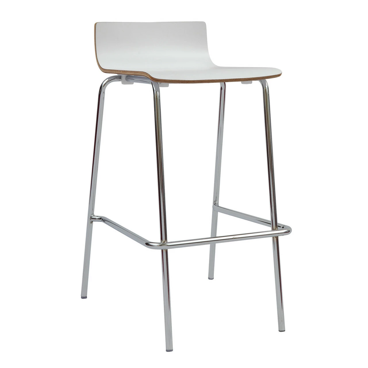 OfficeSource | Bleecker Street Collection | Cafe Height, Low Back Wood Stool With Chrome Base (Pack Of 4)