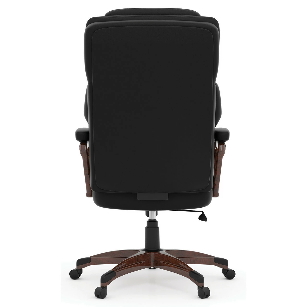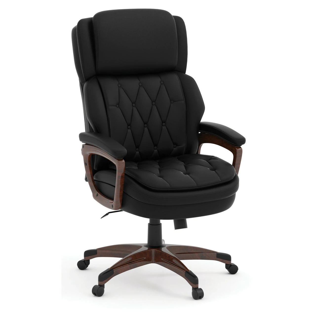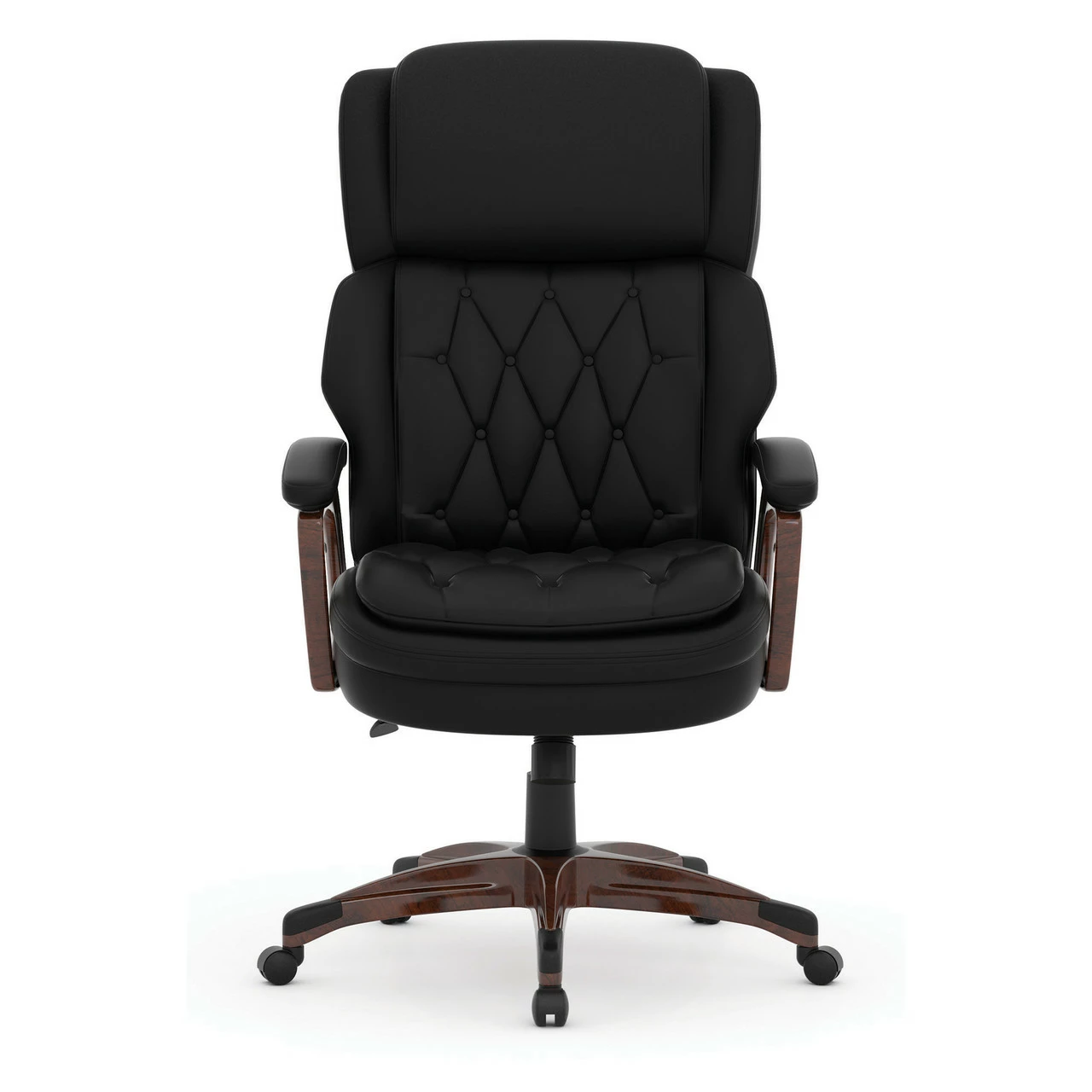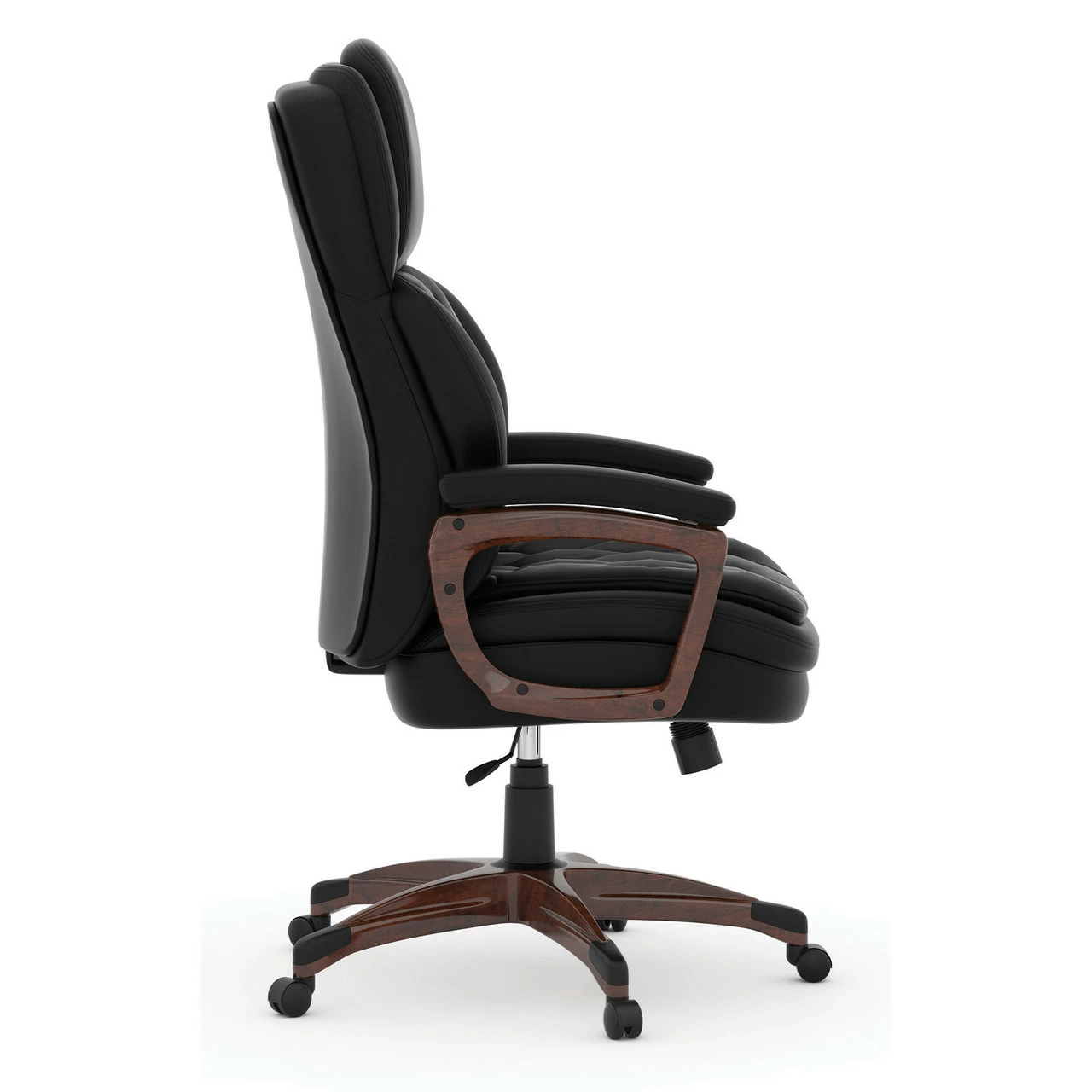 OfficeSource Charleston Collection Executive High Back, Tufted Seat And Back With Plastic Wooden Arms And Base