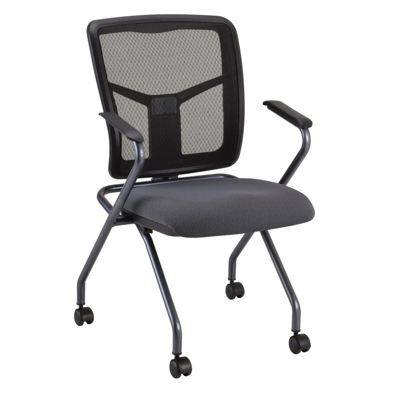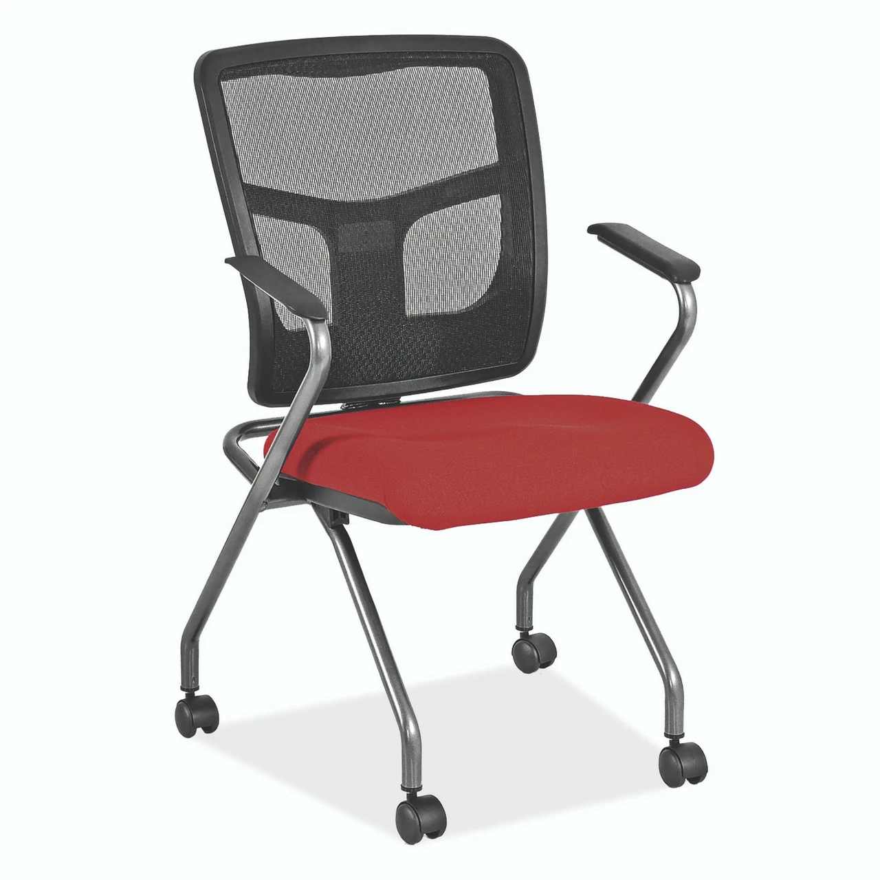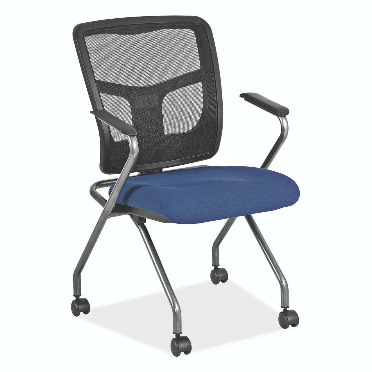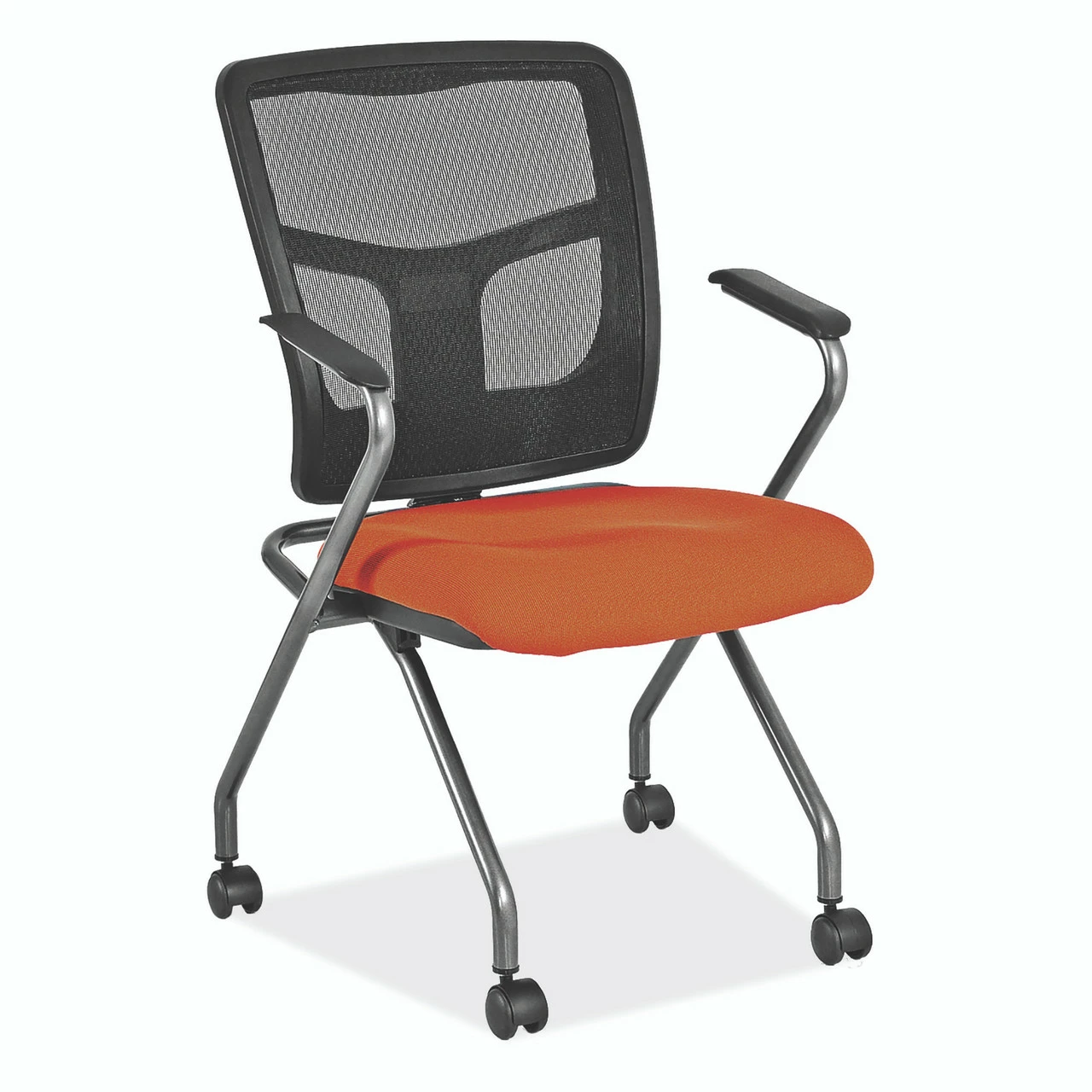 This nesting chair is a great seating alternative for both you and your guests. Due to its folding features, this chair allows you to keep it in an office storage area when not needed. This nesting chair has been a proven winner, and is recommended by almost every other professional. This chair comes with a mesh back for elevated levels of comfort. To make the aesthetics more appealing, the mesh upholstery is accompanied by a titanium gray frame, and a fabric seat in your choice of eight colors. There are even casters attached to the base of the chair for ease of mobility. This nesting chair can certainly be a great addition to your existing office furniture.