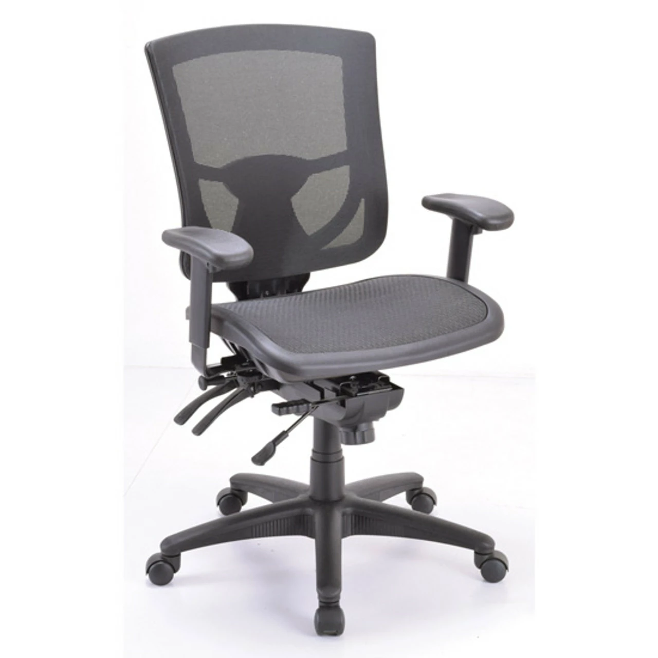 OfficeSource | CoolMesh Pro Collection | All Mesh, Multi-Function, Mid Back Chair With Adjustable Arms And Black Frame