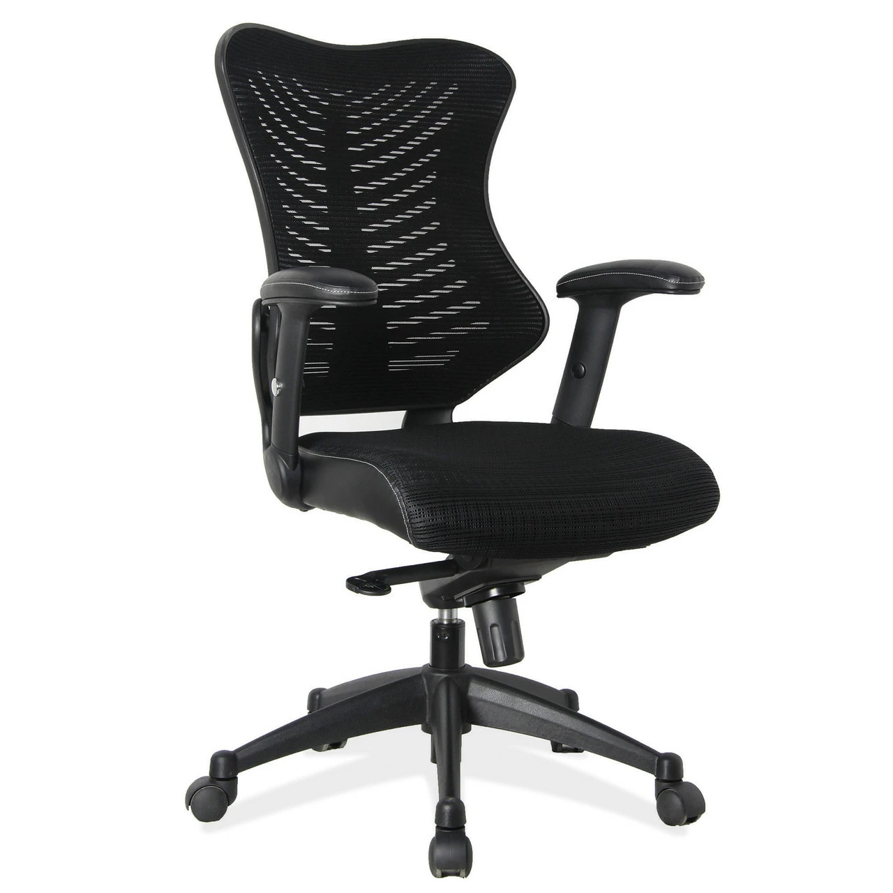 Combine comfort with class with this Costa Series task chair. The Costa Series is built with a unique back design ensuring optimal comfort. Upholstered in black fabric with a black frame, this sleek design will add style to any office. This chair comes with seven ergonomic adjustments, including adjustable arms that take the pressure off the shoulders and the neck, which minimizes future back pain. Costa Series chair swivels 360 degrees to get the maximum use of your workspace without strain on your lower or upper back. The pneumatic height adjustment lever will allow you to adjust the seat to your desired height.
