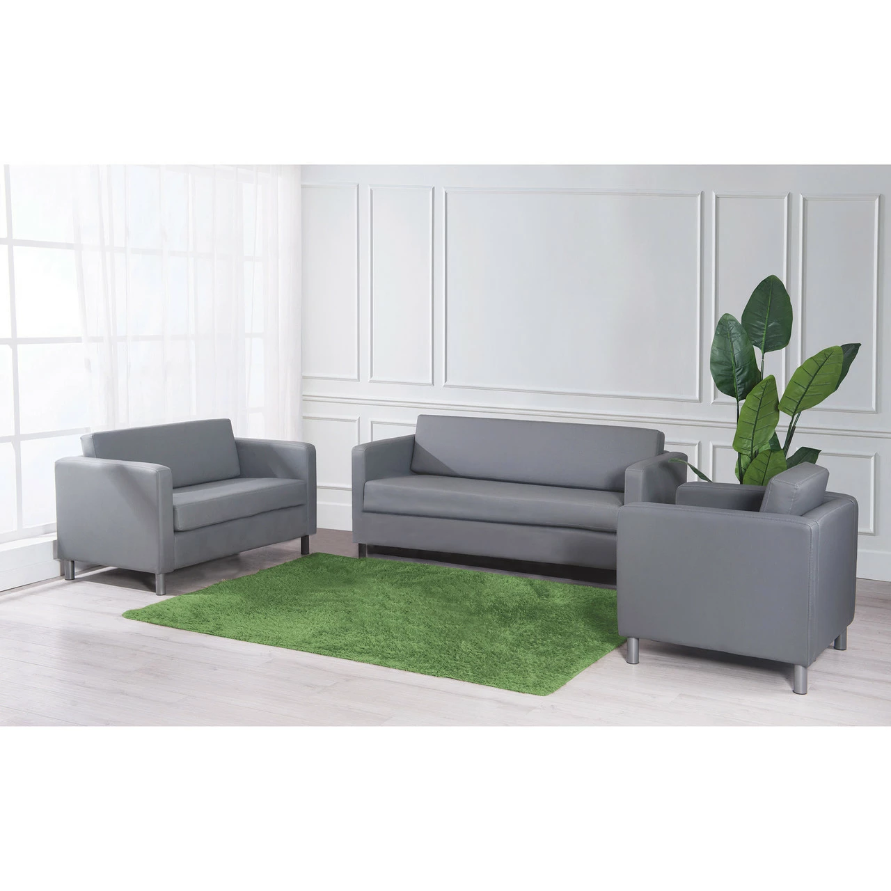 This contemporary designed loveseat comes with ultra soft, durable and breathable PU Leather upholstery. This loveseat is constructed with heavy duty metal legs that are finished in an attractive silver powdercoat. This loveseat features a single piece cushion design.