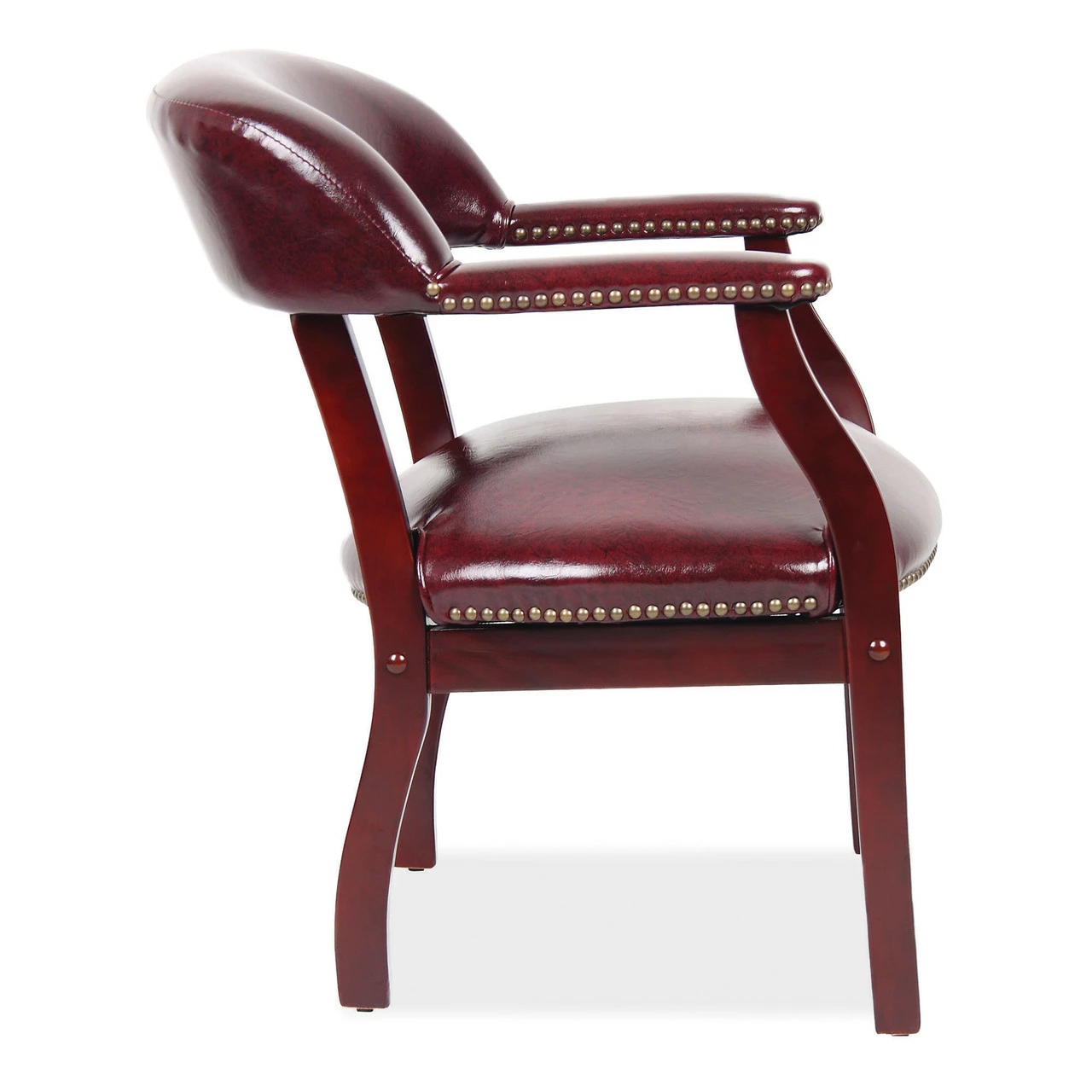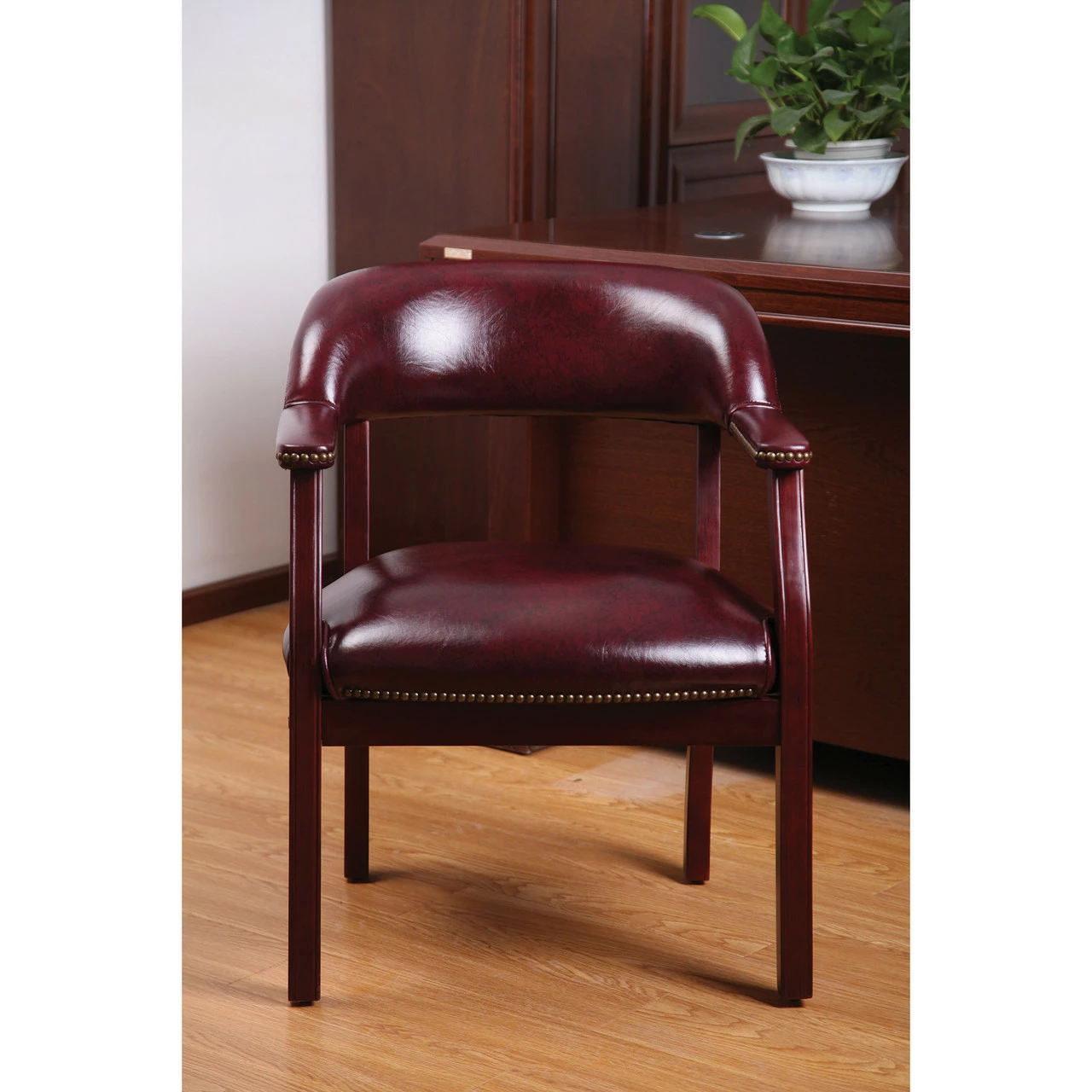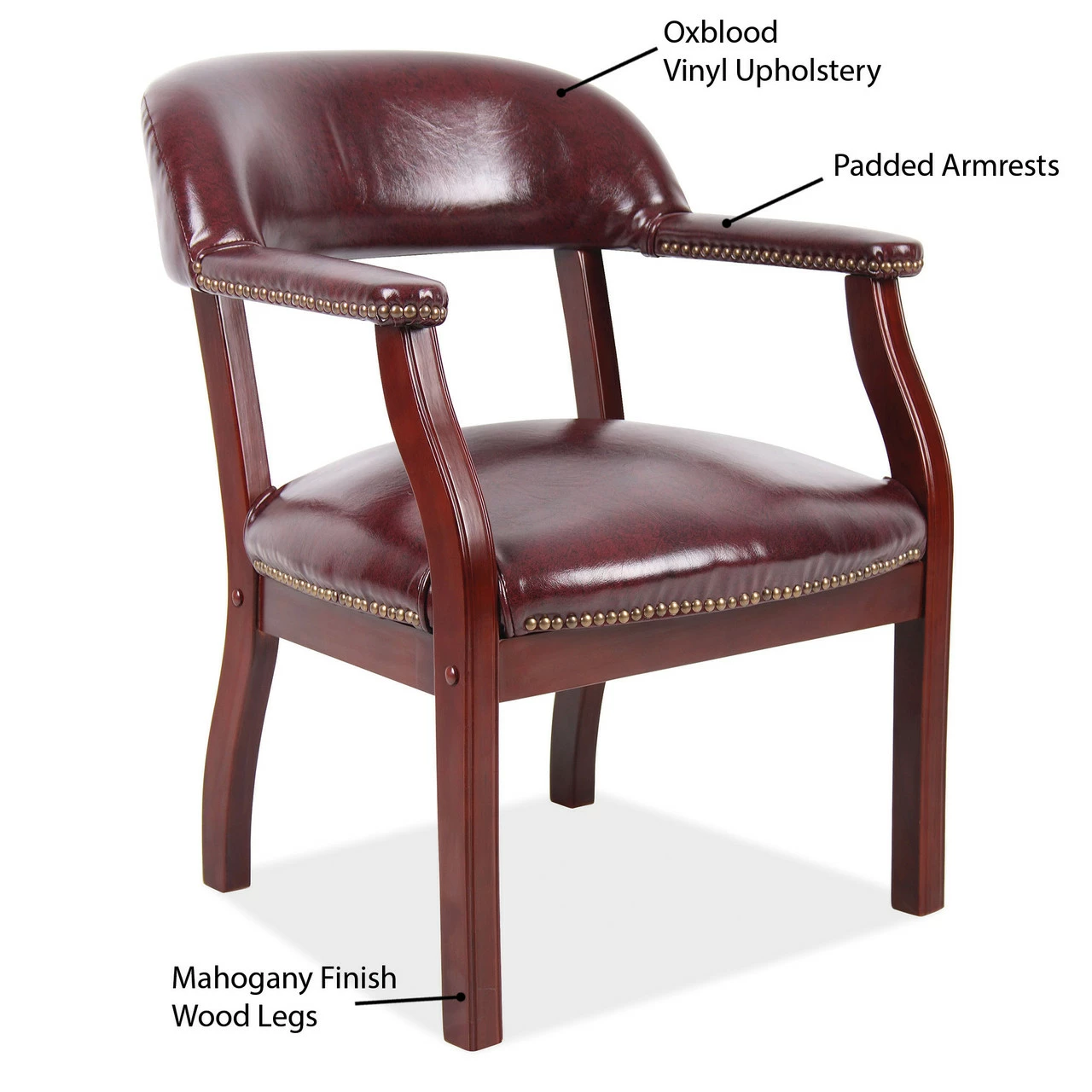 The best way to make a great first impression is by using exquisite office furniture like this guest chair for your reception area. Not only is this chair extremely appealing to the eye, but it also offers sheer comfort. With its sleek design and comfort levels, this OfficeSource guest chair is perfect for your reception area. The perfect blend of mahogany wood and the comfortable oxblood vinyl upholstery offers this guest chair the elegance it boasts.