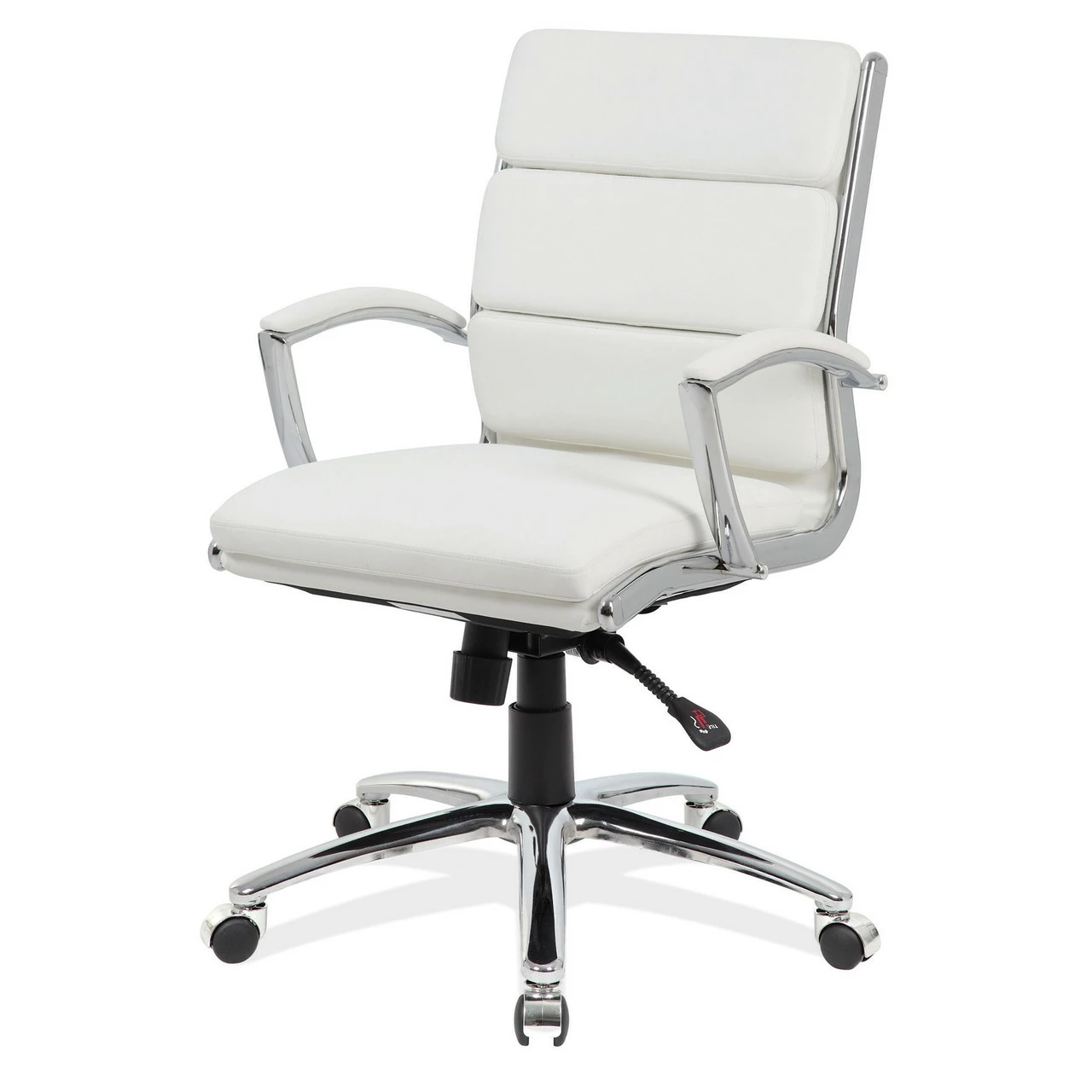 Finding the perfect office chair to rest your back as you work hard to stay on top of your day’s work often becomes impossible. However, it doesn’t have to be this way; all you have to do is invest in this executive mid back chair from OfficeSource. Soothing and relaxing, with a soft seat in your choice of two upholstery color options, and with sturdy arms to rest your hands on, this mid back chair has a variety of features to offer. This executive mid back chair is designed by expert craftsmen and, as such, this relaxing chair also offers attention grabbing aesthetics. Adding beauty to comfort, this chair has all the exciting features that an executive mid back chair should offer.