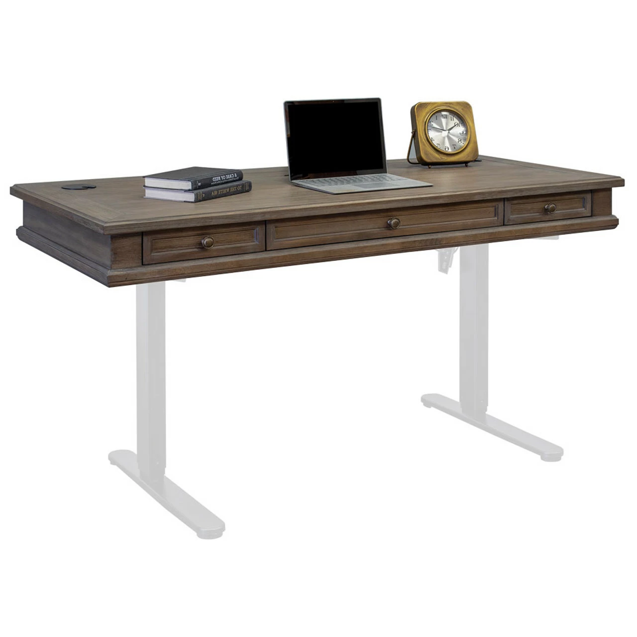 This sit-stand desk top will keep you mobile and active in style. Coming in a weathered dove gray finish, with mottled hardware, this top is unique, with an antique vibe. Equipped with a drop front keyboard pencil drawer, two utility drawers, two AC outlets, three USB outlets, and one charging shelf, this top provides ample storage and working space. Decide how you want to work by choosing this sit-stand desk top from the Monroe Collection.