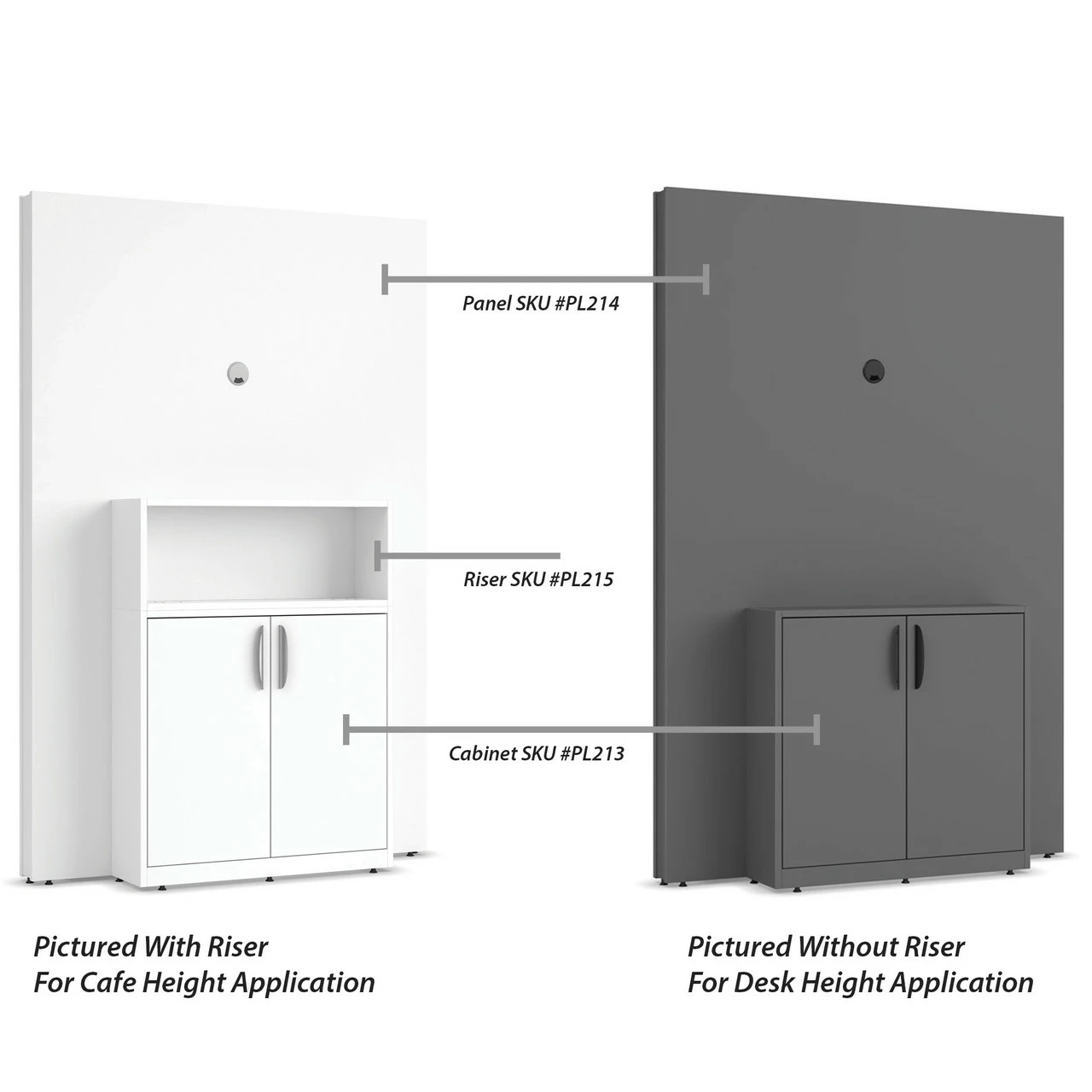 This power riser is the perfect addition to your power wall setup. Attaching to a power cabinet, this riser provides an area to place your devices power box, DVD players, and remotes in, without having to take up other usable space.