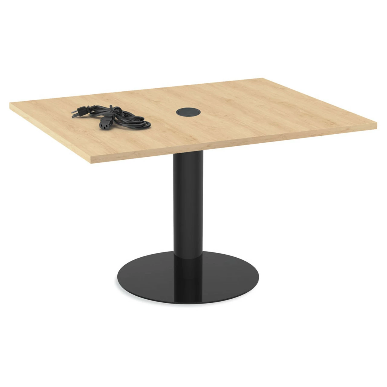 The durable round base offers ample support and leg room when attached to a conference or multi-purpose table. The center of the column has an opening to allow for a power supply to run through as needed. The heavy base prevents wobbling while anchoring the table to the floor.
