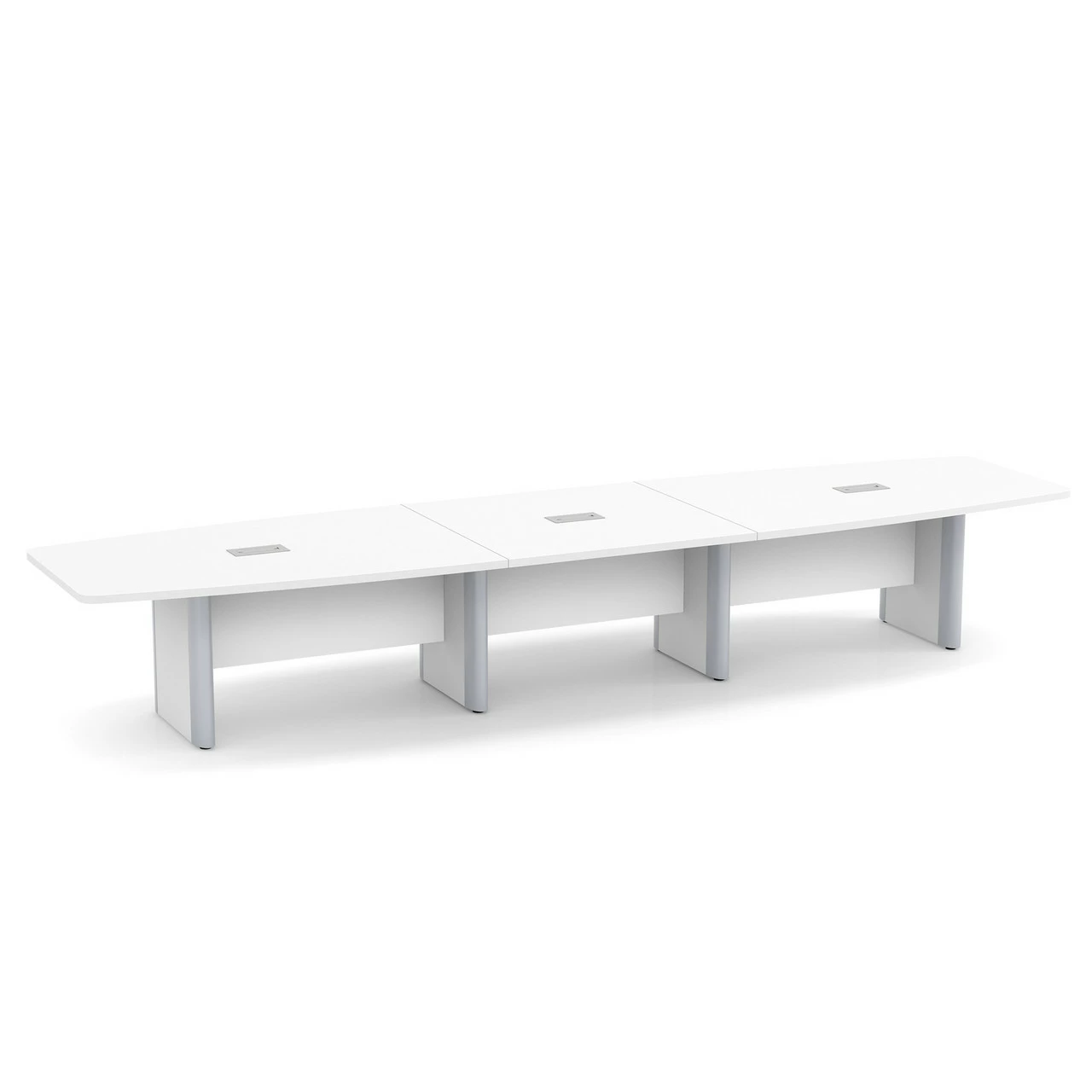 Choose your size and style with Expandable OS Laminate Conference Tables. Expandable tables by OfficeSource make it easy to accommodate more people. Boat shaped conference tables are an attractive and inexpensive solution to your large conference table needs. The tables in this collection are the most beautiful expandable conference tables build to fit your requirements. Put this table in your office and always get compliments. This boat conference table accepts power modules for power and data access to operate computers and presentation equipment. This boat shaped conference table and elliptical base is available in your choice of eight great finish options to best complement your existing conference room decor.