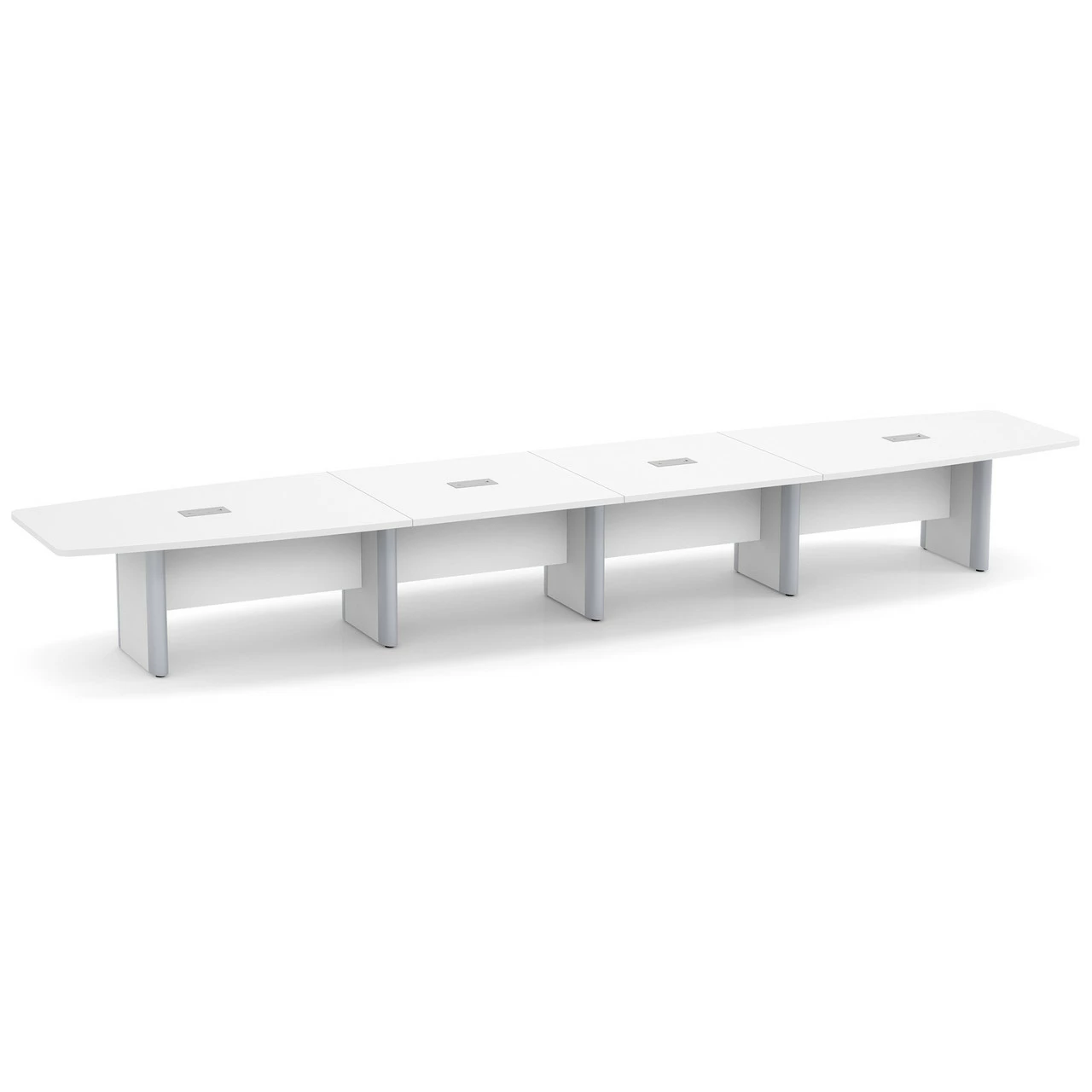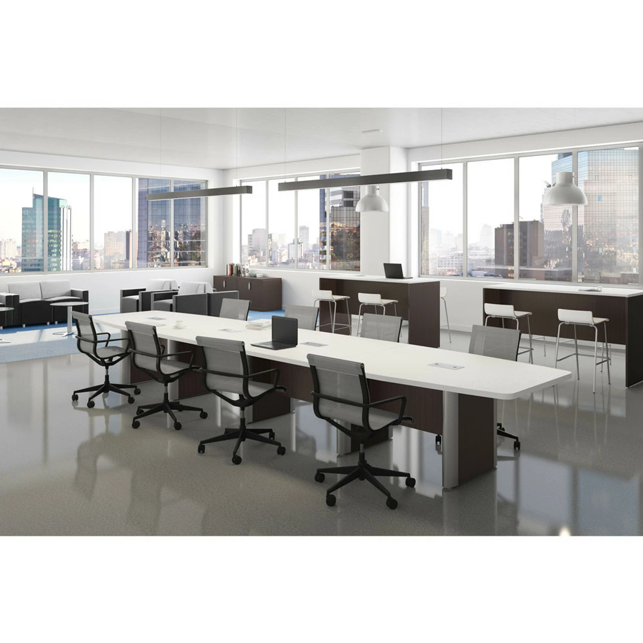 Choose your size and style with Expandable OS Laminate Conference Tables. Expandable tables by OfficeSource make it easy to accommodate more people. Boat shaped conference tables are an attractive and inexpensive solution to your large conference table needs. The tables in this collection are the most beautiful expandable conference tables build to fit your requirements. Put this table in your office and always get compliments. This boat conference table accepts power modules for power and data access to operate computers and presentation equipment. This boat shaped conference table and elliptical base is available in your choice of eight great finish options to best complement your existing conference room decor.