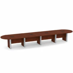 Choose your size and style with Expandable OS Laminate Conference Tables. Expandable tables by OfficeSource make it easy to accommodate more people. Racetrack shaped conference tables are an attractive and inexpensive solution to your large conference table needs. The tables in this collection are the most beautiful expandable conference tables build to fit your requirements. Put this table in your office and always get compliments. This racetrack conference table accepts power modules for power and data access to operate computers and presentation equipment. This racetrack conference table and elliptical base is available in your choice of eight great finish options to best complement your existing conference room decor.