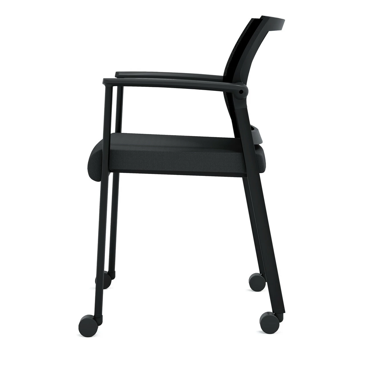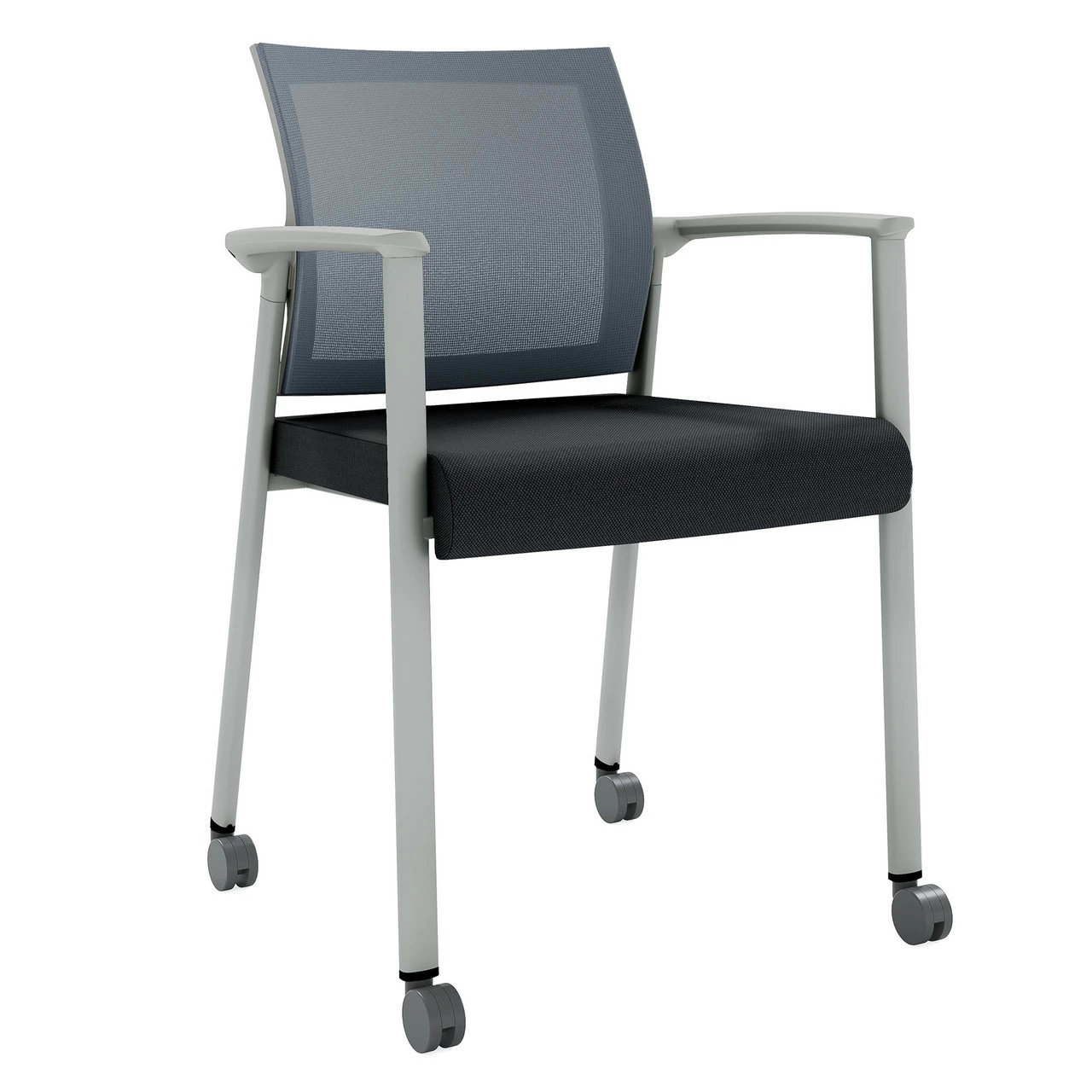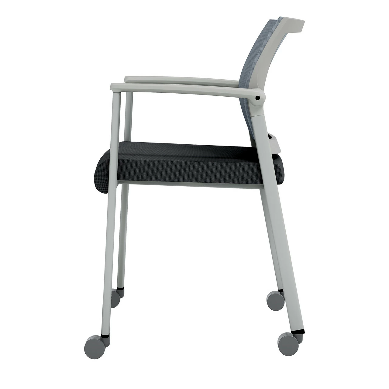 Oslo by OfficeSource features a Stackable Mesh Back Seating Side Chair. The upholstery and frame provide a sleek design that will modernize any office, lobby, or reception space. Coming in black or light gray, these stackable chairs feature PP armrests, molded foam seats and nylon mesh backrests. Customize with optional adapters or casters. Minimize your storage footprint by stacking these guest chairs. Able to stack 4 high. Make the Guest Mesh Back Stacking Side Chair your choice for any office space!