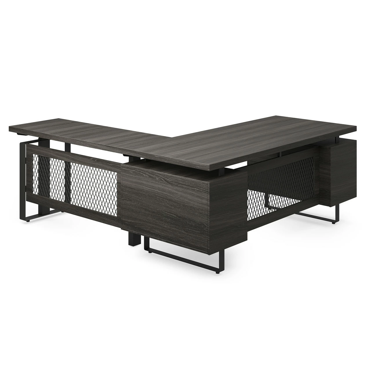 OfficeSource | Palisades | Industrial L-Shaped, Height Adjustable Desk With Single Pedestal