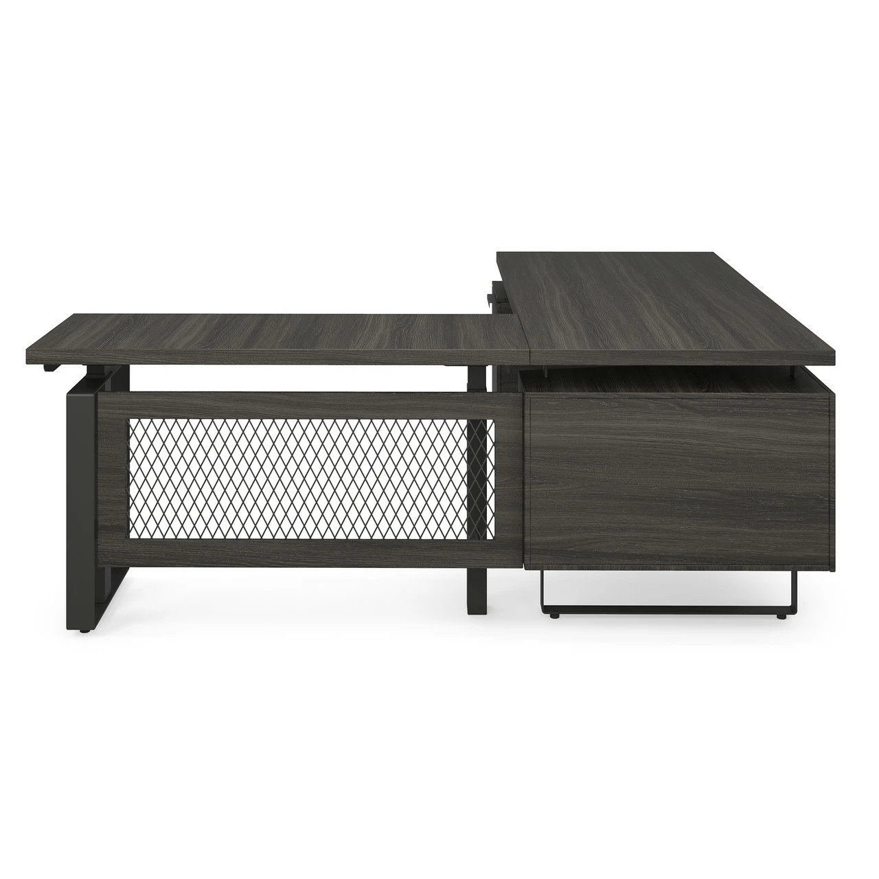 Extend your desk in elegance with our versatile, adjustable height desk return. Keep your options open with a seated desk and a standing return, so you can work how you want to, when you want to. Designed with a Gauntlet Gray surface, strong rectangular angles, and an industrially accented modesty panel, this adjustable height extension molds to fit your needs.