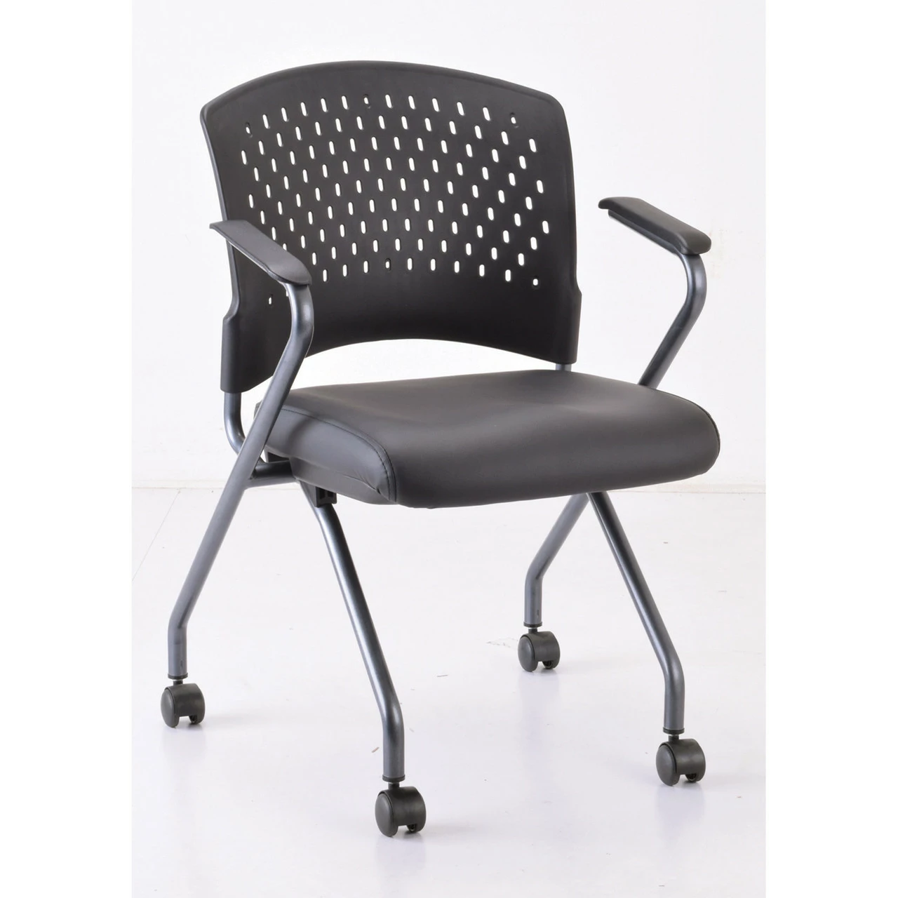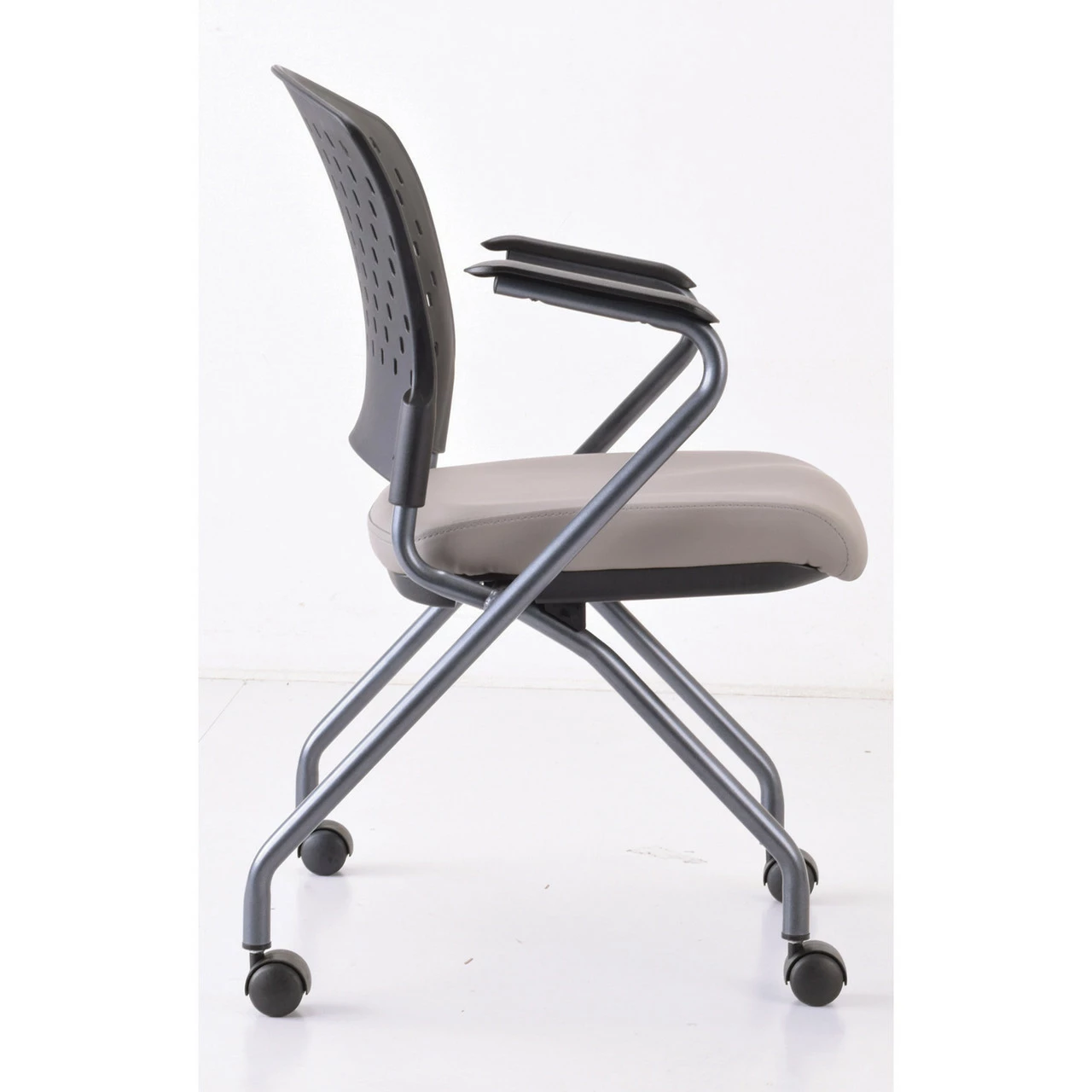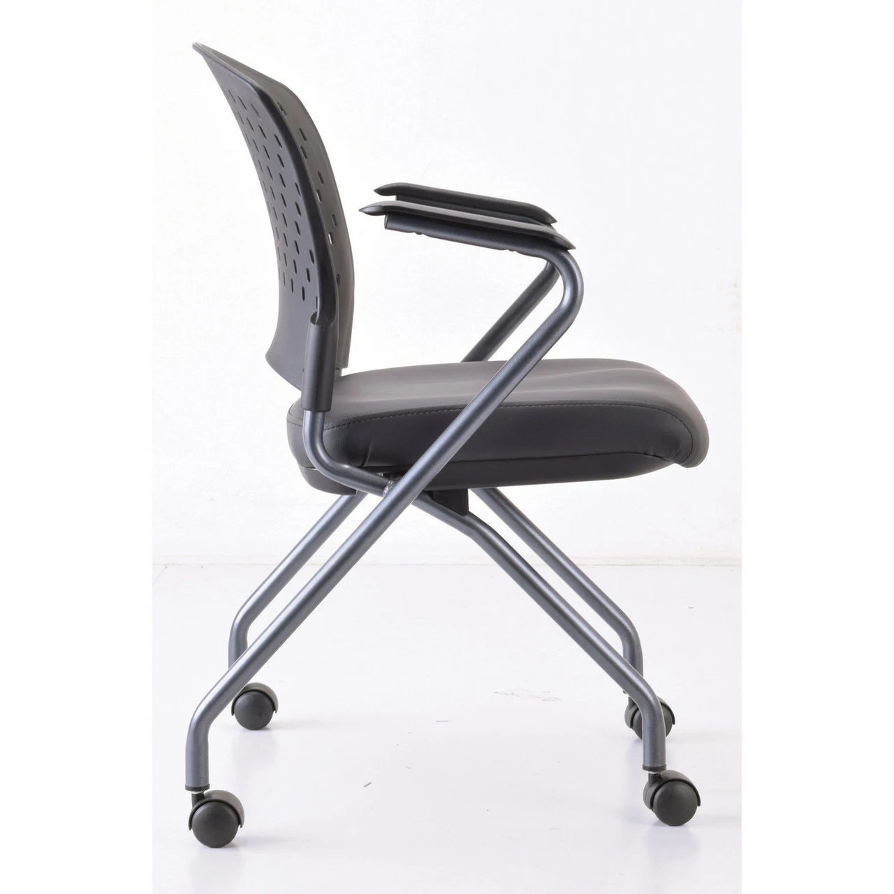 OfficeSource | Perch | Nesting Chair With Arms And Casters, Titanium Frame