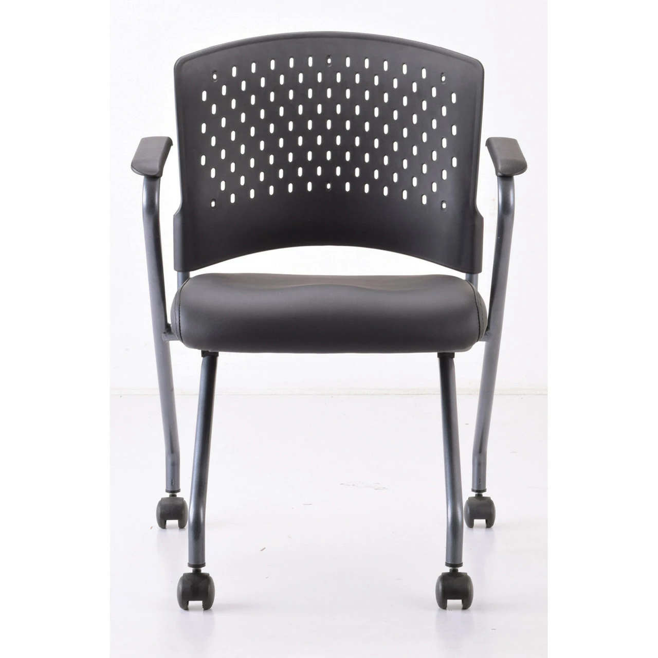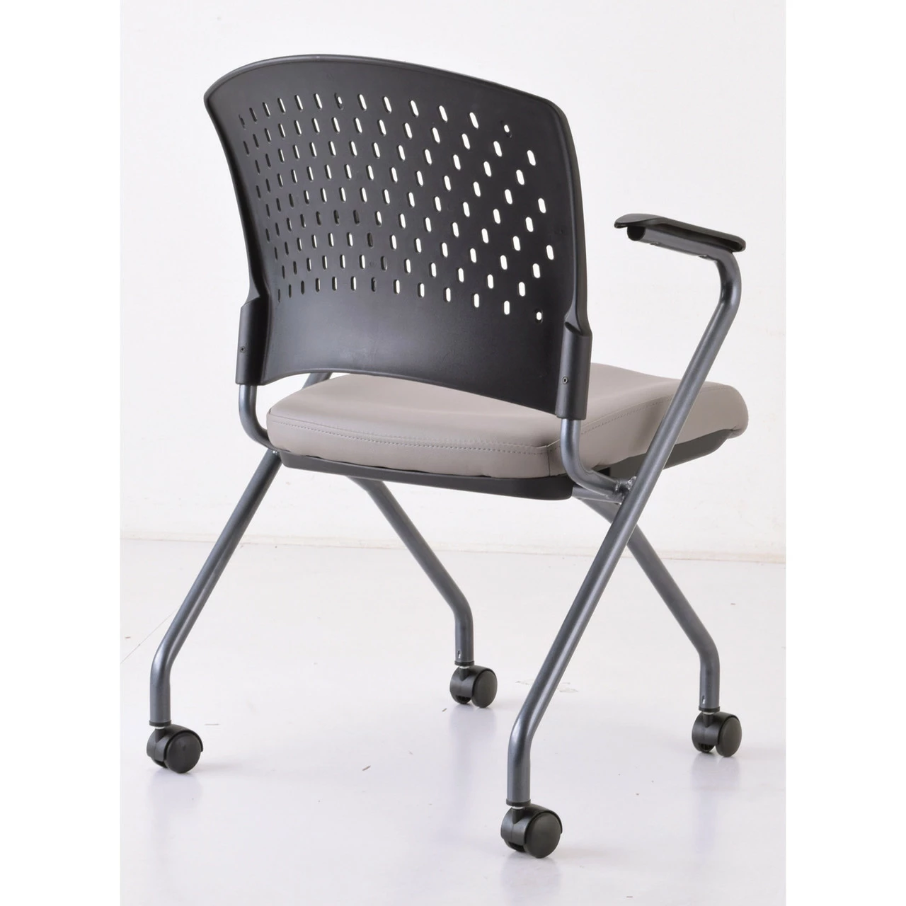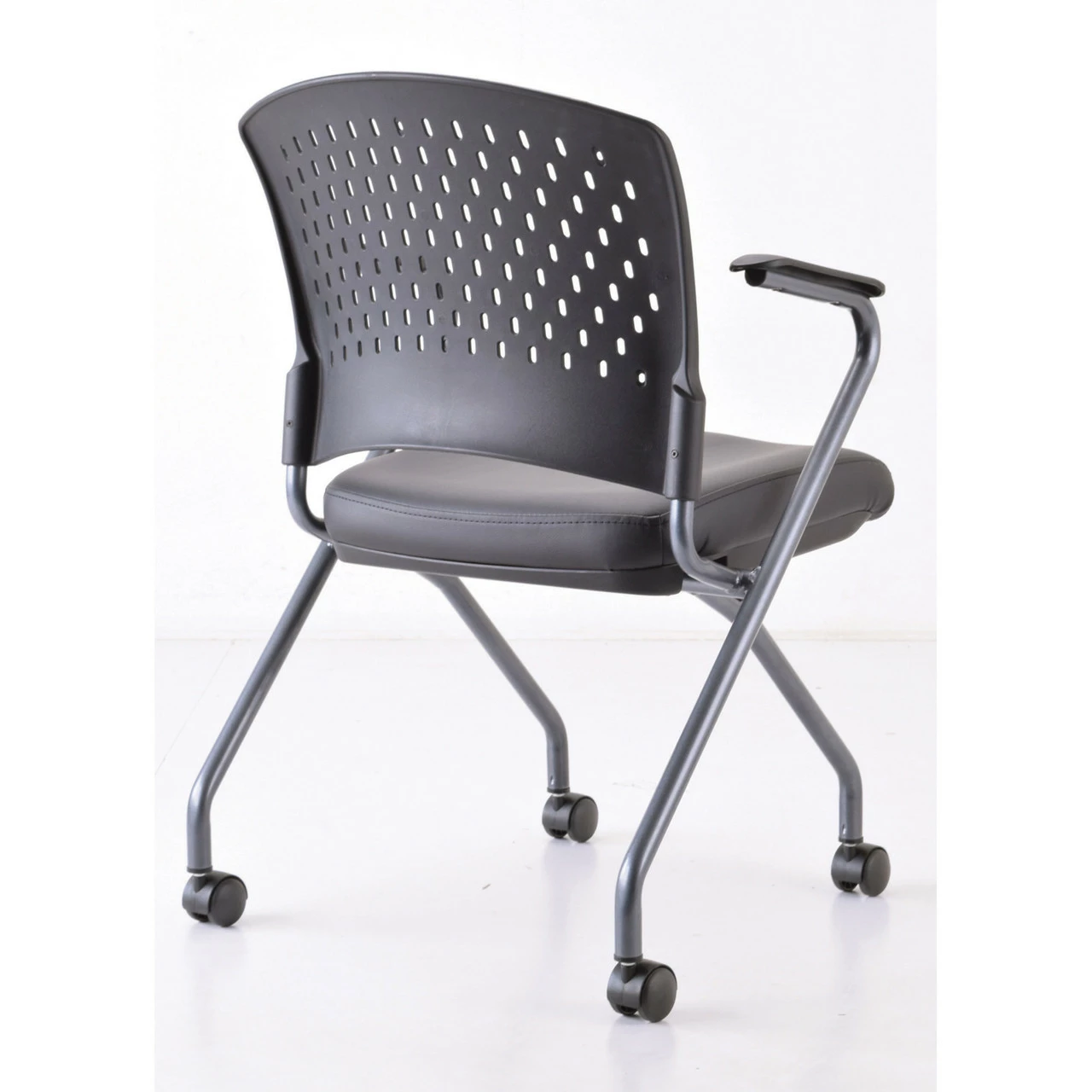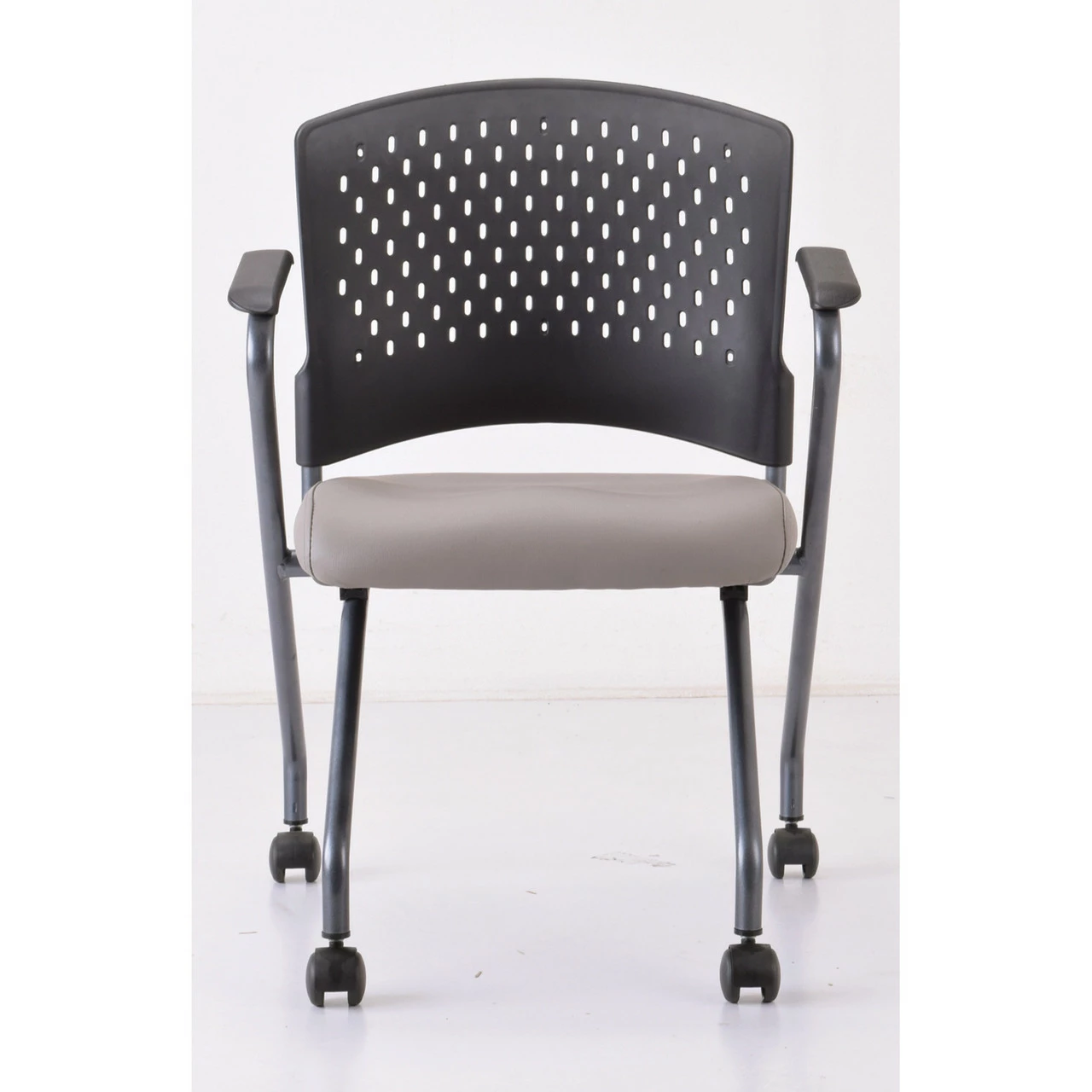 OfficeSource | Perch | Nesting Chair With Arms And Casters, Titanium Frame
