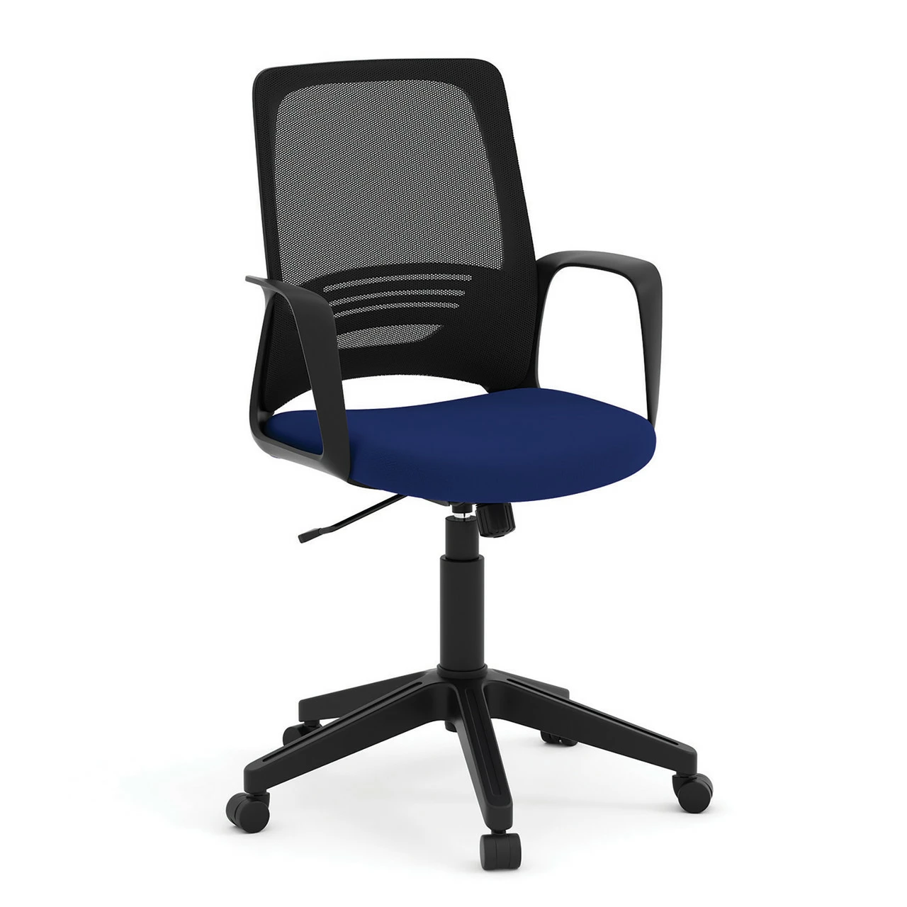 The Mesh Back Task Chair has black base and black frame. It also features pneumatic seat height, 360-degree swivel, and tilt tension. The chair comes in a variety of seat colors.