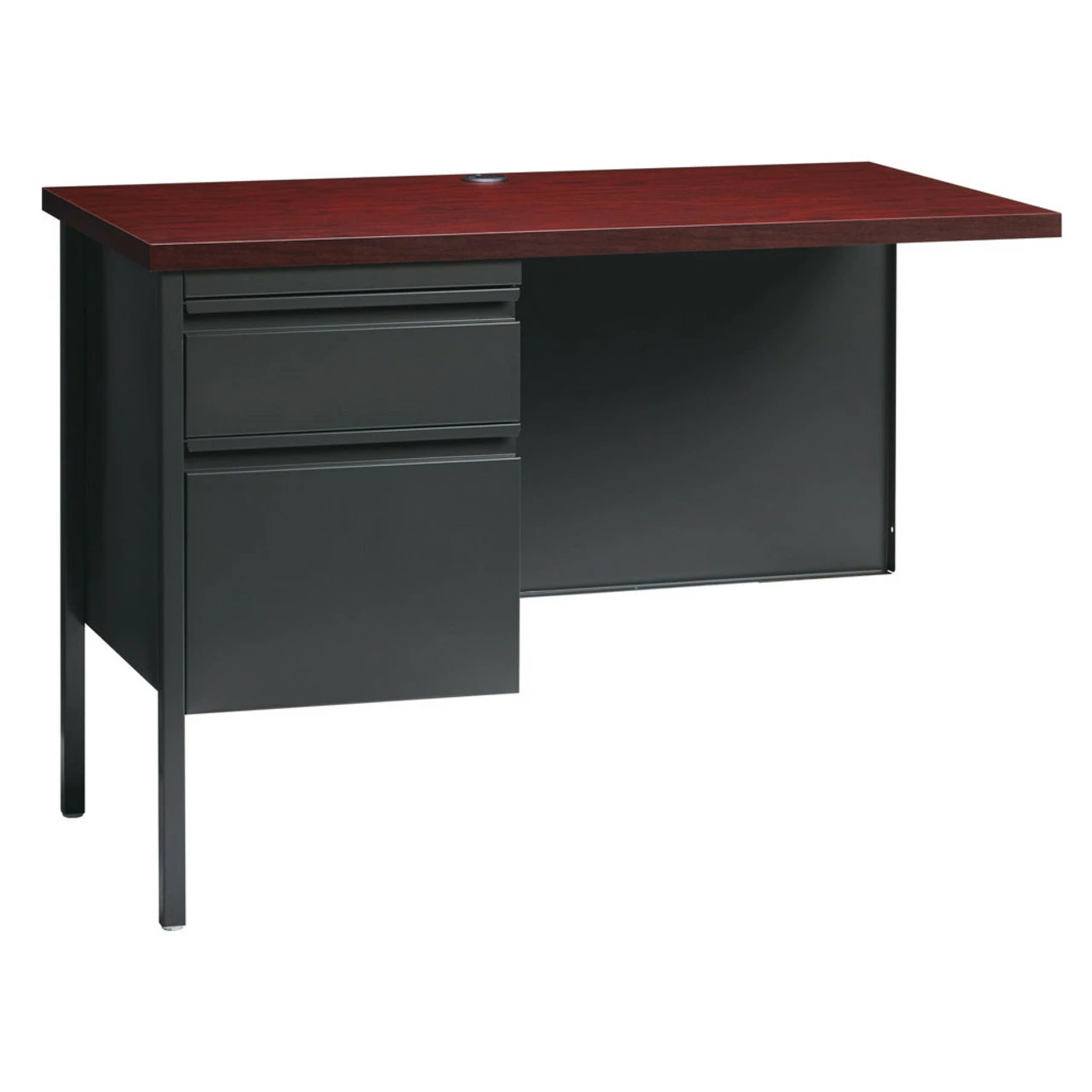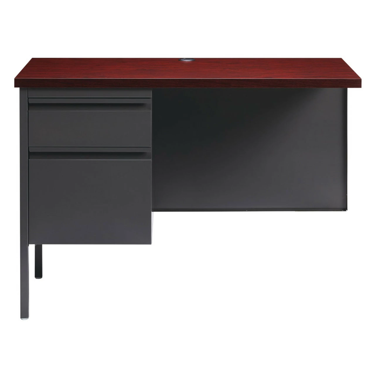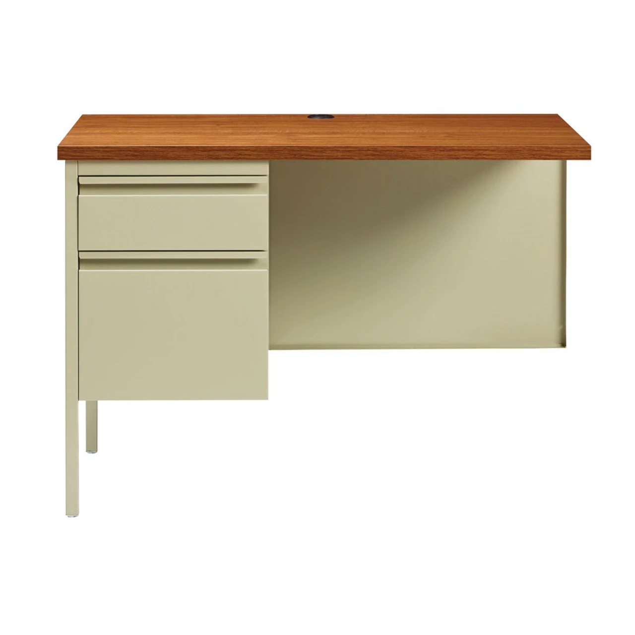 A durable solution for long-term heavy use, our metal desk is a professional desk solution for business, government, and school administrative offices and classrooms. The laminate makes the top easy to clean and disinfect.