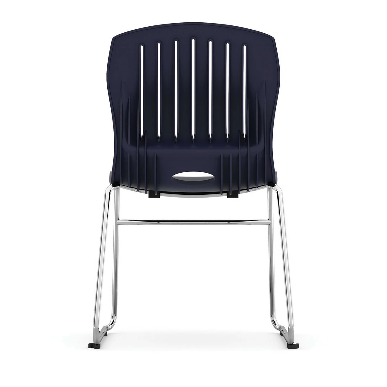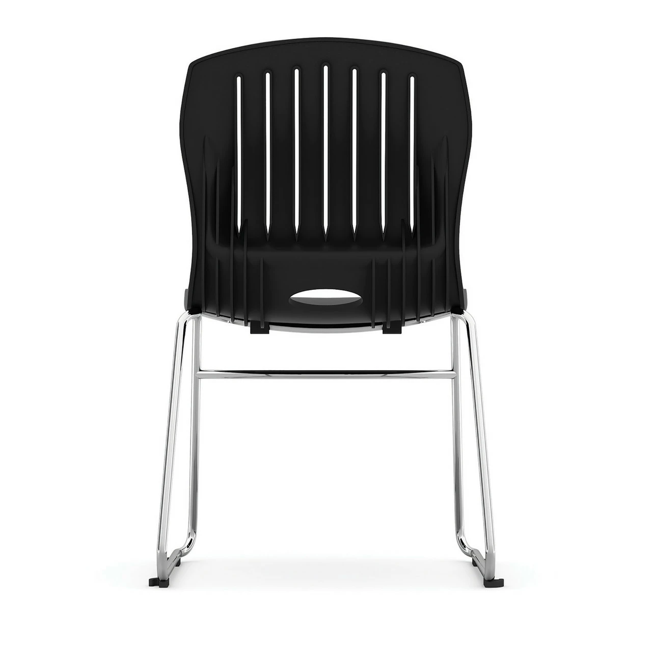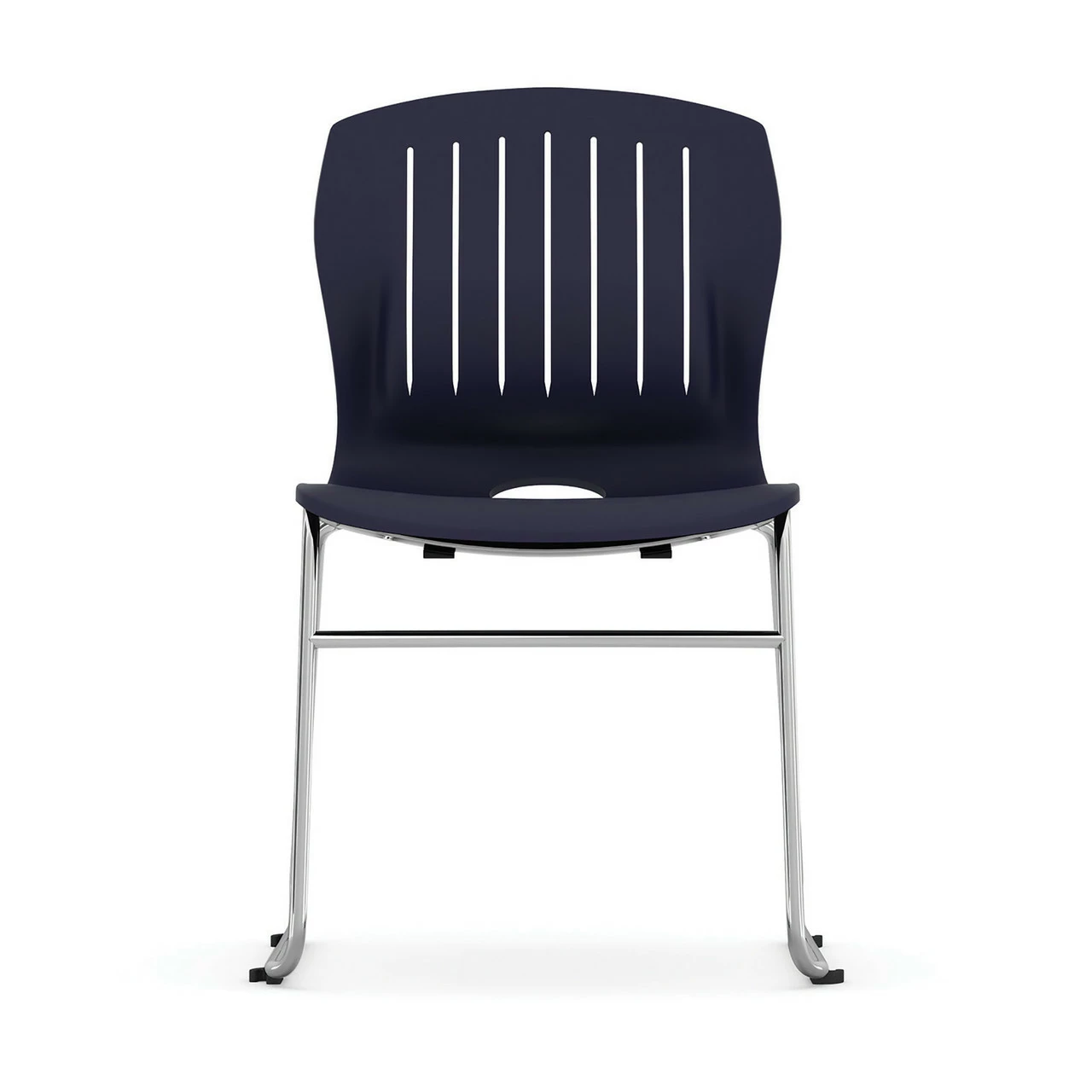 The Armless Sled Base Stack Chair features a sturdy chrome base with durable polypropylene seats. It comes a variety of seat colors. The chairs are stackable.