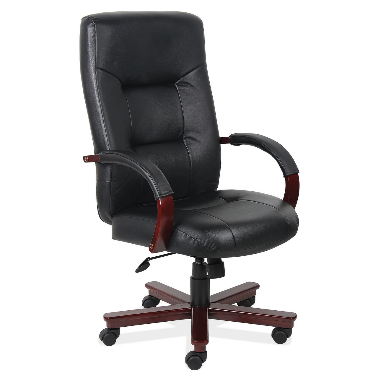 OfficeSource Spencer Collection Executive High Back Swivel Tilt With Mahogany Frame
