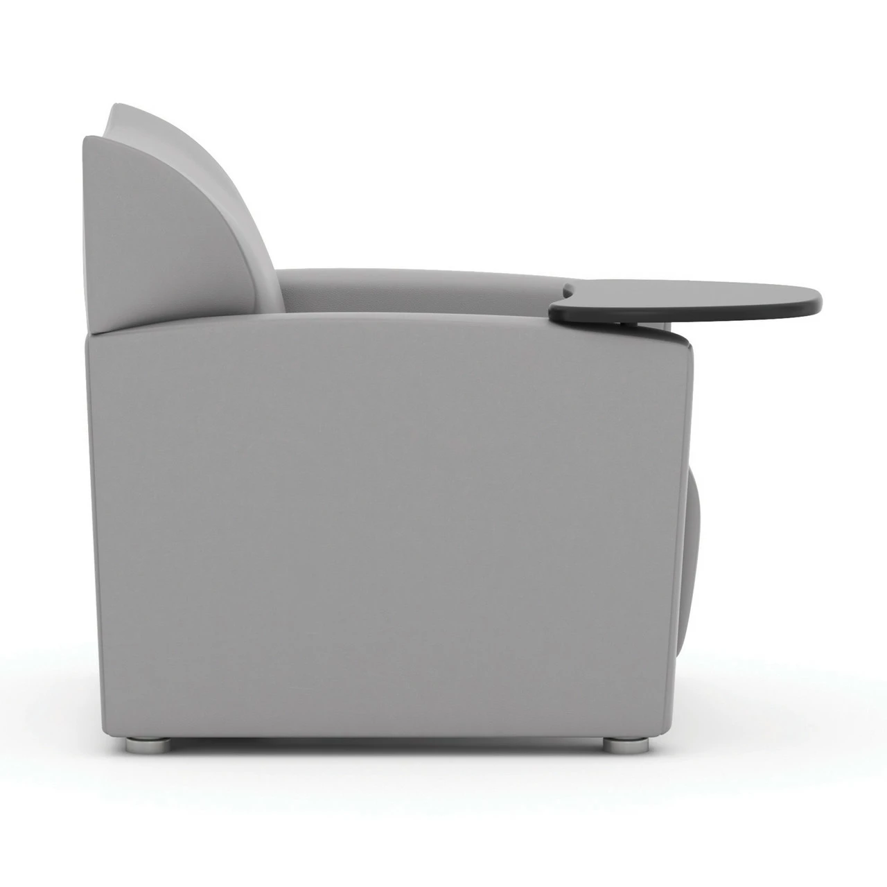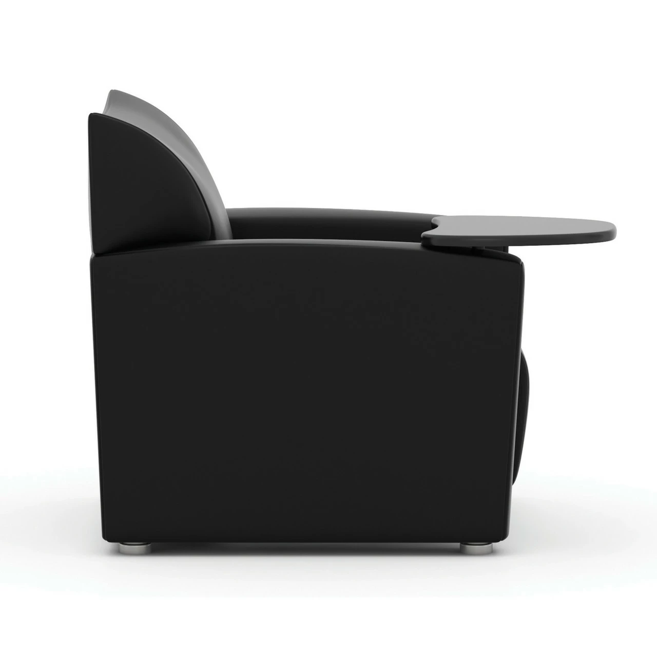The Tribeca Collection of furniture offers a sleek contemporary design that makes it a great choice for your office, and for your home. Each piece in the collection has been designed to be durable, and to offer the comfort that you’re looking for. This comfortable club chair is offered in Black and Light Gray Vinyl. It’s easy to maintain, and will provide years of great use. The added carbonized finished table arm makes it easy to work comfortably, with a stable surface that’s ideal for a laptop or for taking notes on.