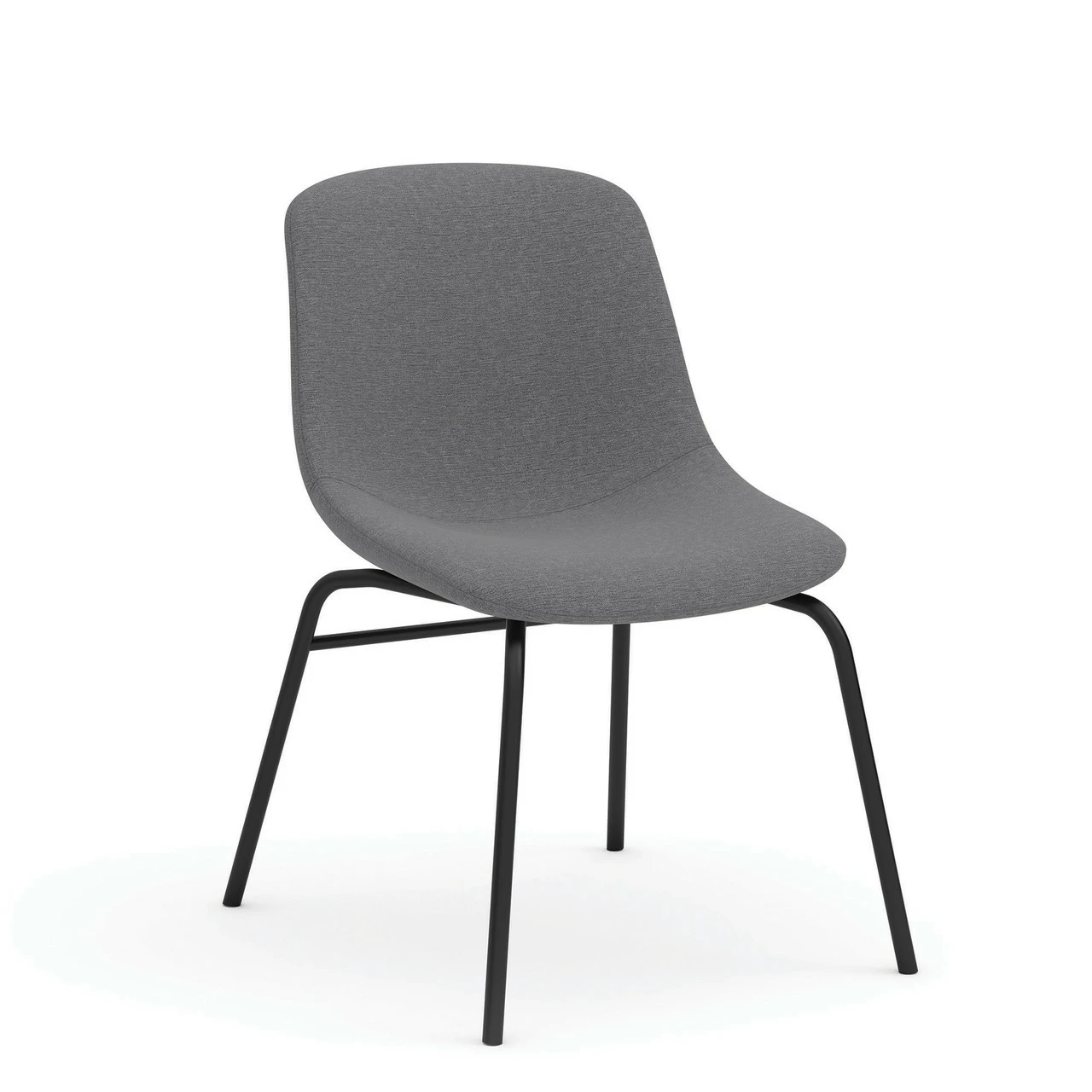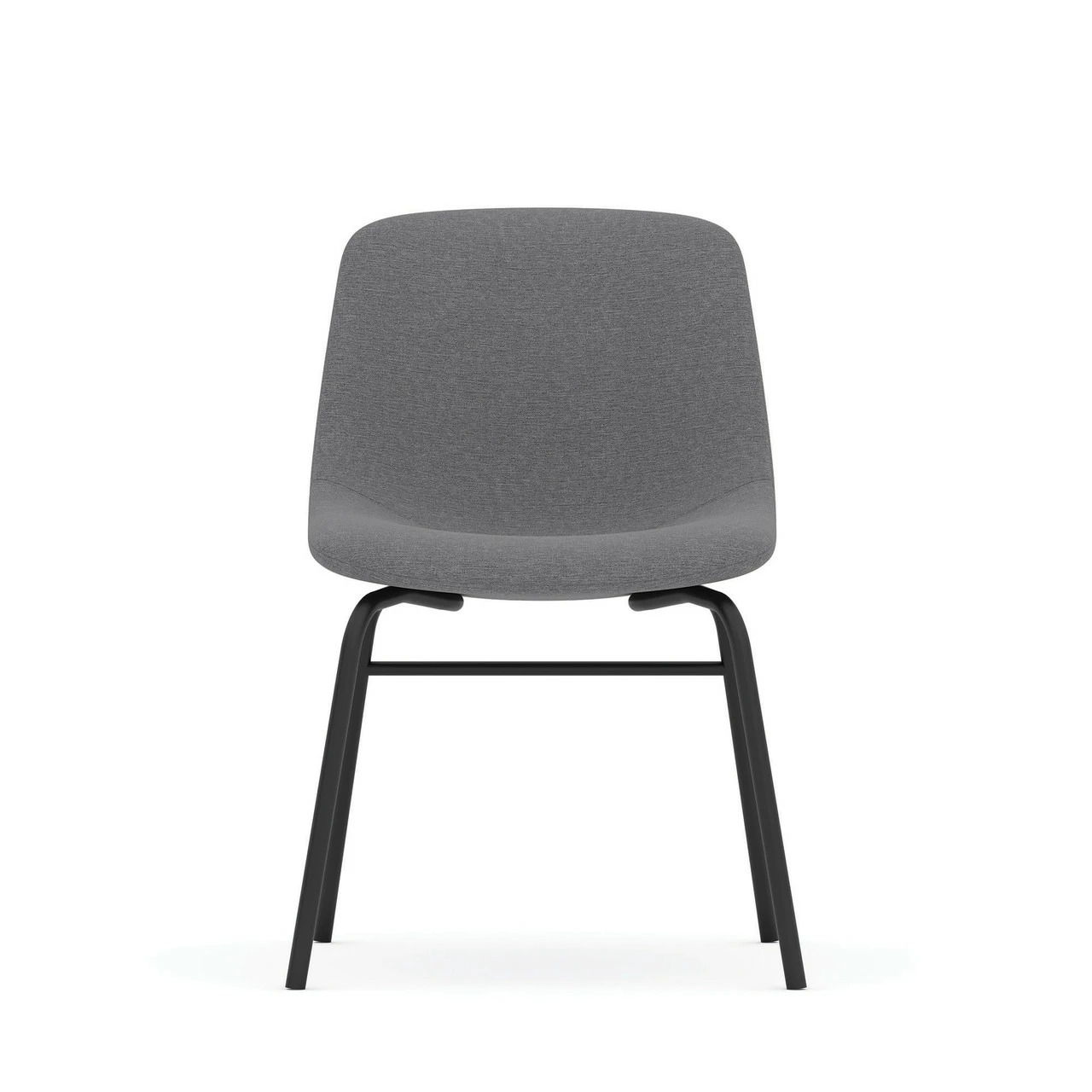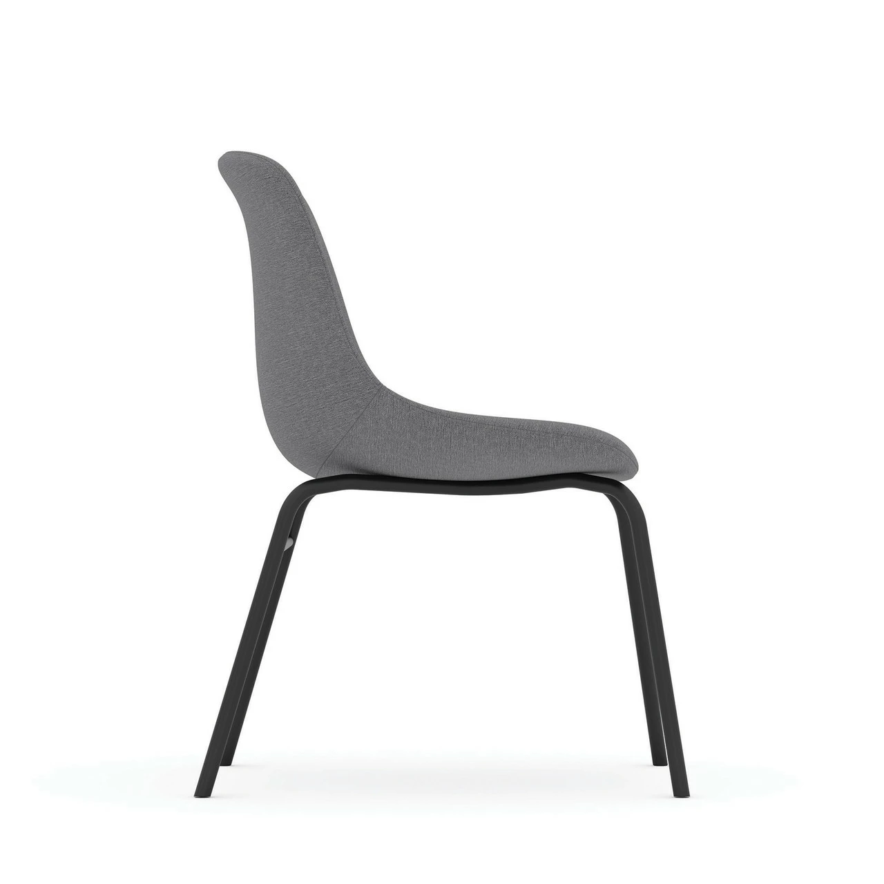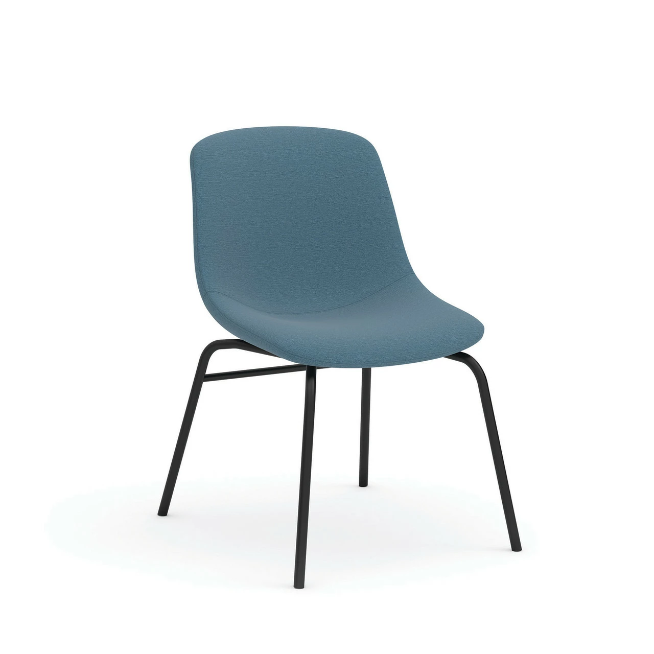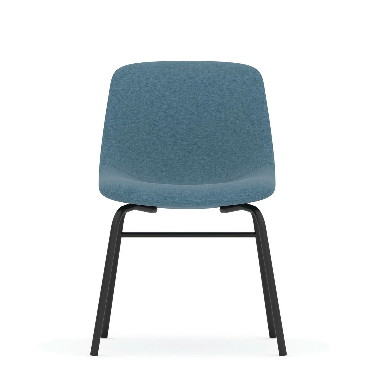 The fabric-covered, molded foam chair body offers comfort and style. The metal sled base provides a stable platform with minimal movement.