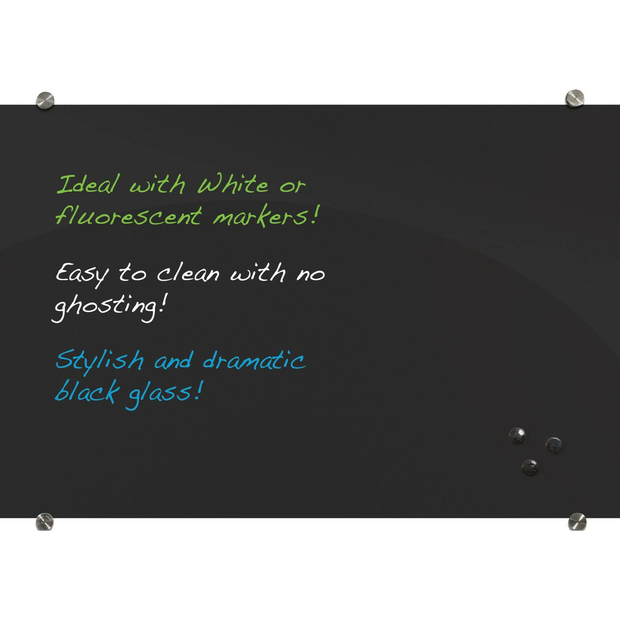 For the green-aware office, this black magnetic glass dry erase board is the smart choice. Made using sustainable and eco-friendly materials, this glass dry erase board will transform any wall in your office into a communication center. If you’re looking for a dry erase board for your office wall, you’ll find that this board meets all of your needs. This magnetic markerboard is ultra-durable, and boasts a glossy black surface that will make it a breeze to glide your favorite markers across. Pin notes and important reminders to the board with your favorite magnets. This board is a great addition to any work space, and will be a useful addition to your home office or kitchen.